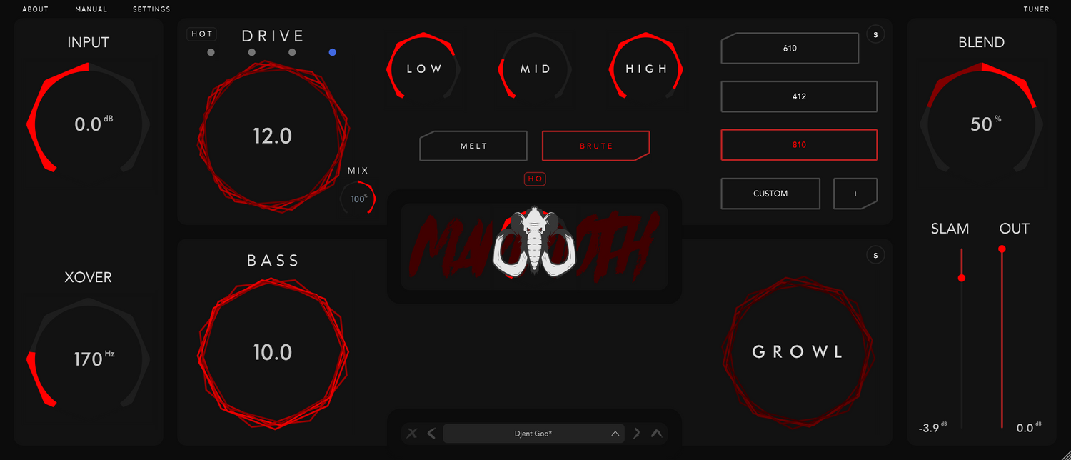 Mammoth ist ein leistungsstarkes und dennoch intuitives Bass-Plugin mit einer zweibändigen Signalverarbeitung, die einen Bass-Maximierer, 3 Arten von Drive, einen Tone Stack, Cabinet-Simulationen und vieles mehr umfasst. Wir haben Mammoth mit Einfachheit und Flexibilität im Hinterkopf entwickelt. Es ist für Künstler, Produzenten und Ingenieure gleichermaßen gemacht.