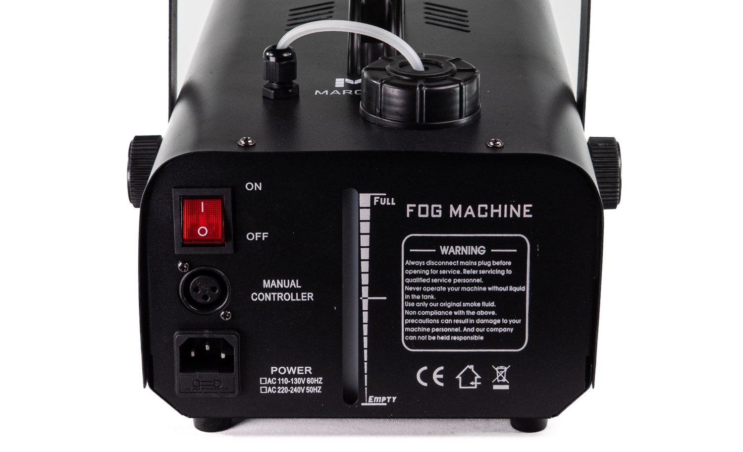 Marconi's 900W is an excellent fog machine that produces an impressive amount of smoke, ideal for any mobile DJ. It is especially cool when used with light effects. Both a wireless and a wired remote control are included. There is a temperature-controlled heating element that ensures stable smoke production.