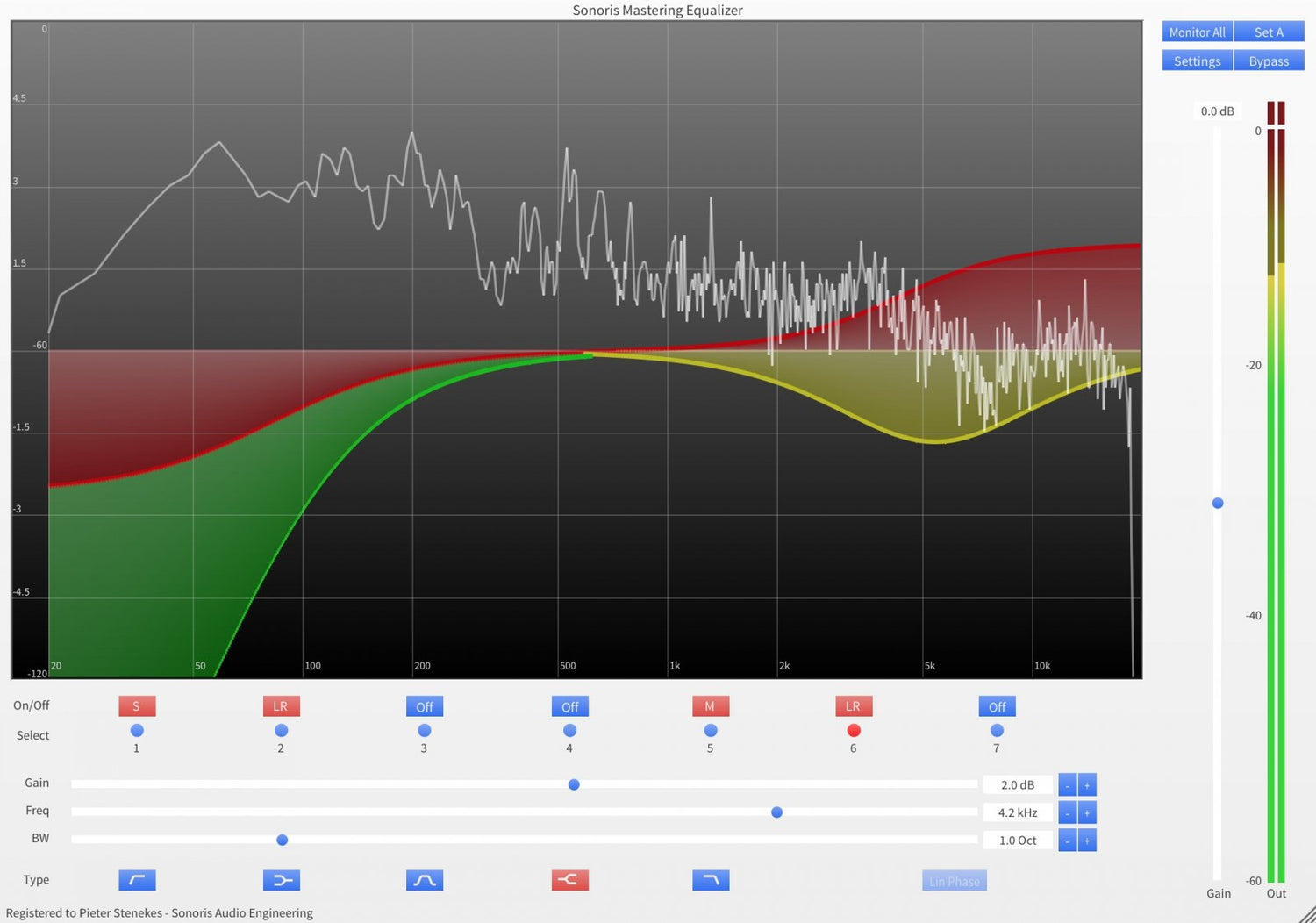 The Sonoris Mastering Equalizer (SMEQ) is a parametric equalizer in VST, VST3, AU, AAX and RTAS format for Windows and Mac. It has selectable linear phase or minimum phase operation per band. The plugin is suitable for mixing and especially mastering and features 7 bands, including lowpass, highpass, peaking and shelving filters.