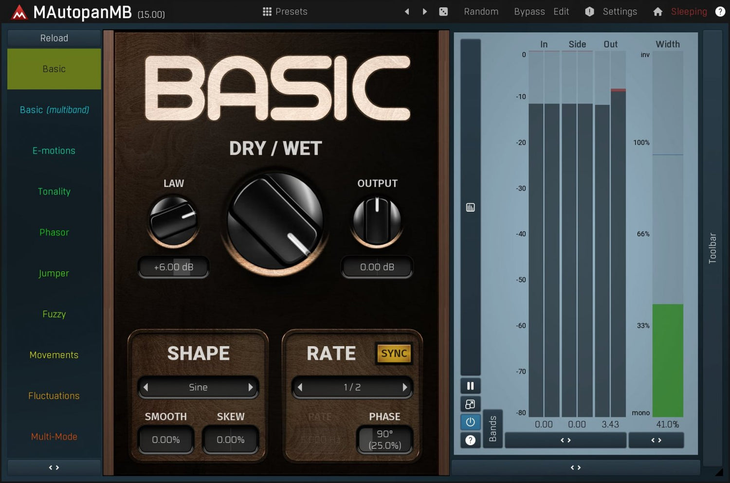 MAutopanMB, the most powerful automatic panner in the world, is the cure whenever you need to make some audio material more spatial and less static. It's an indispensable tool for keyboards, guitars and many other mono instruments.
