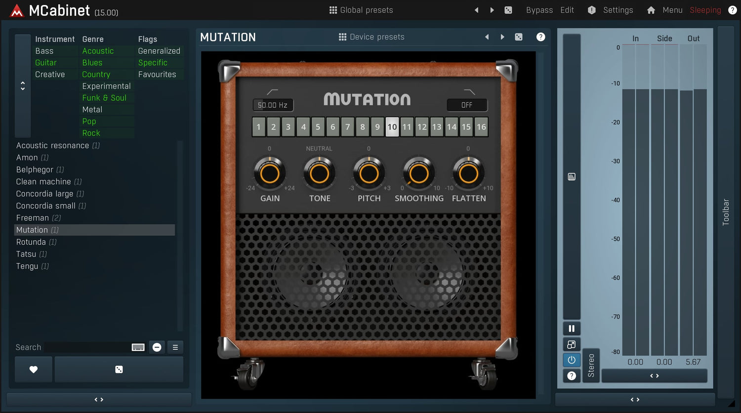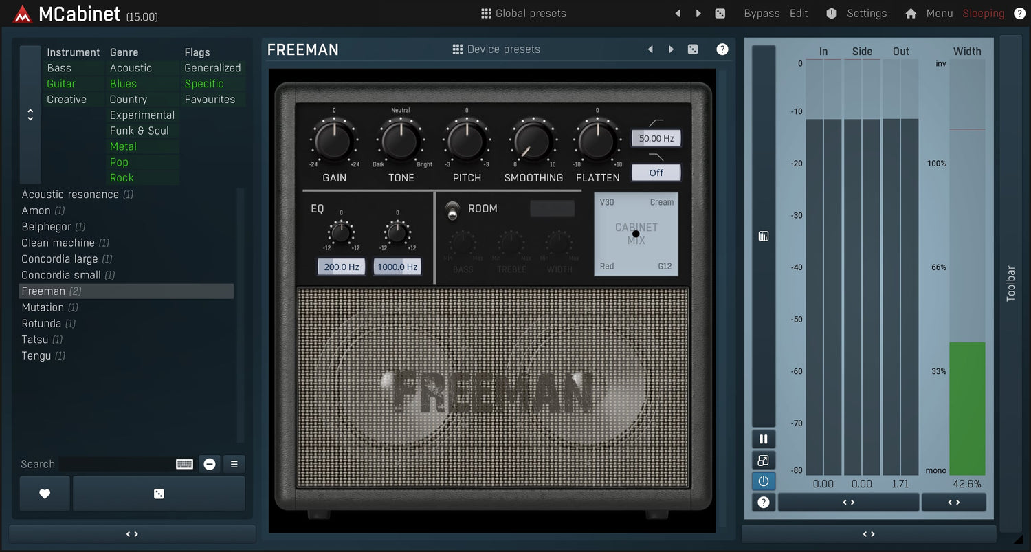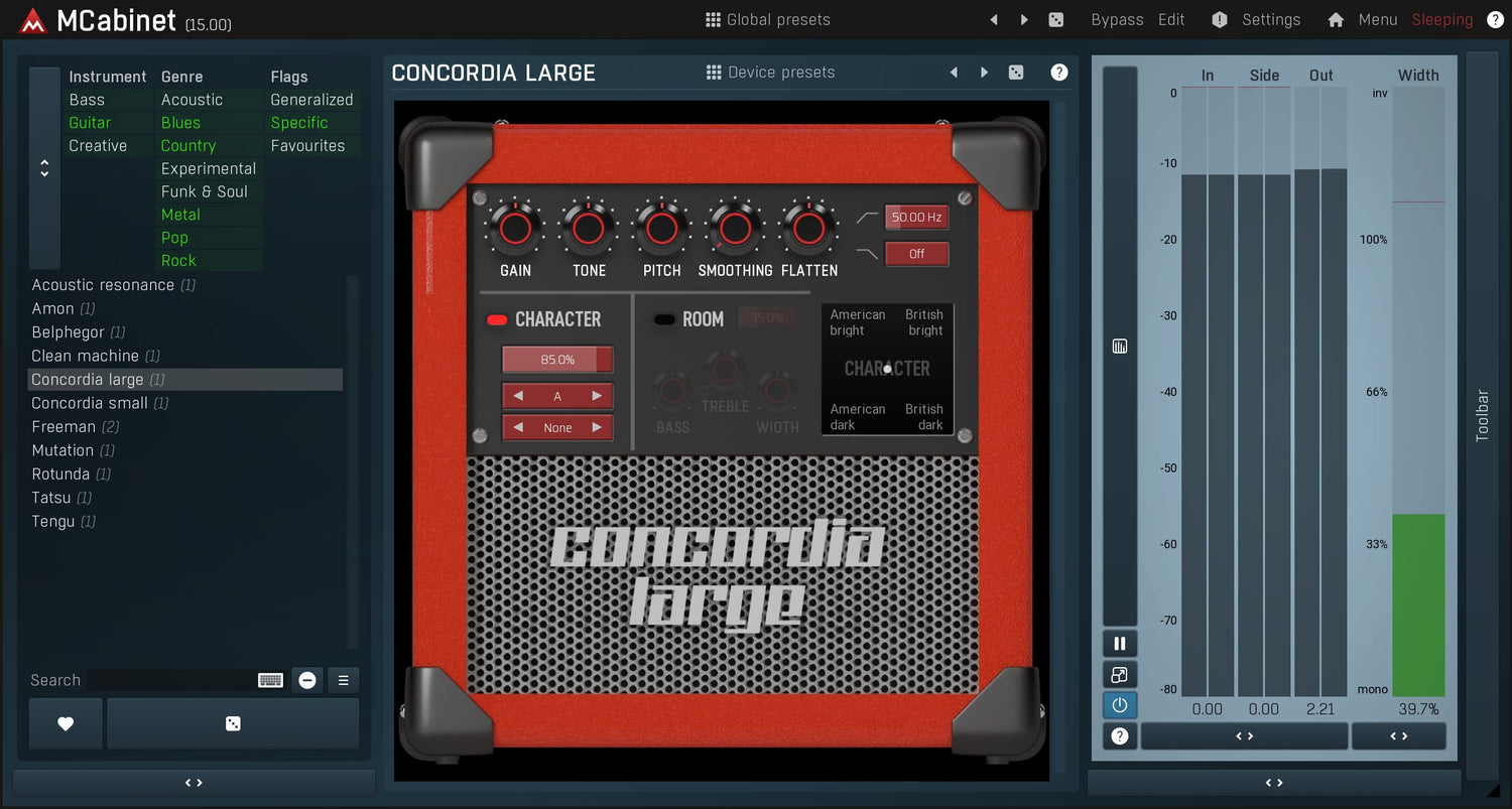 MCabinet is a revolutionary cabinet simulator mainly for guitars and bass, but can be a great creative sound design tool as well. Instead of thousands of IR files it lets you focus on the sound itself and gets you a virtually infinite number of cabinets!