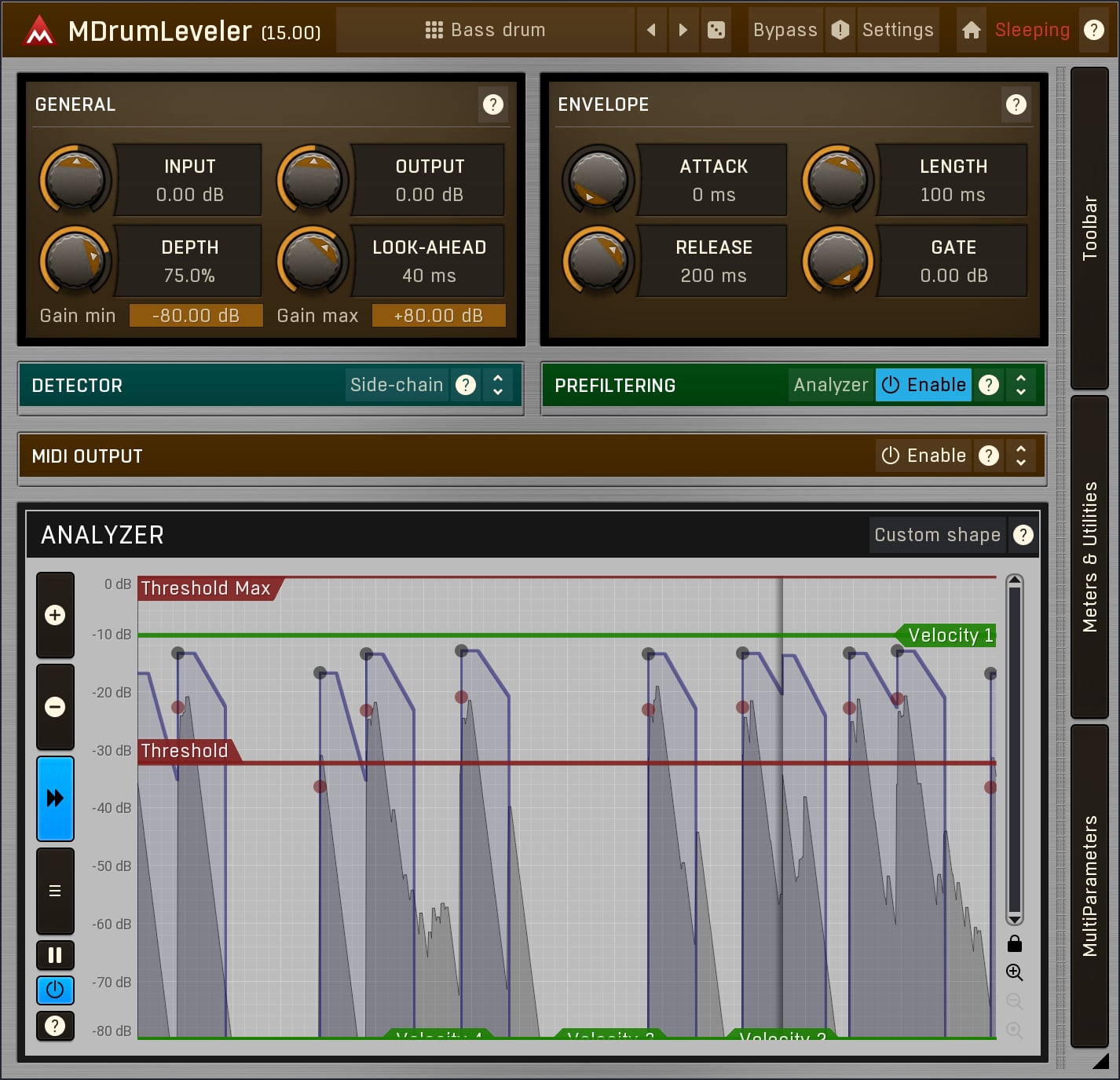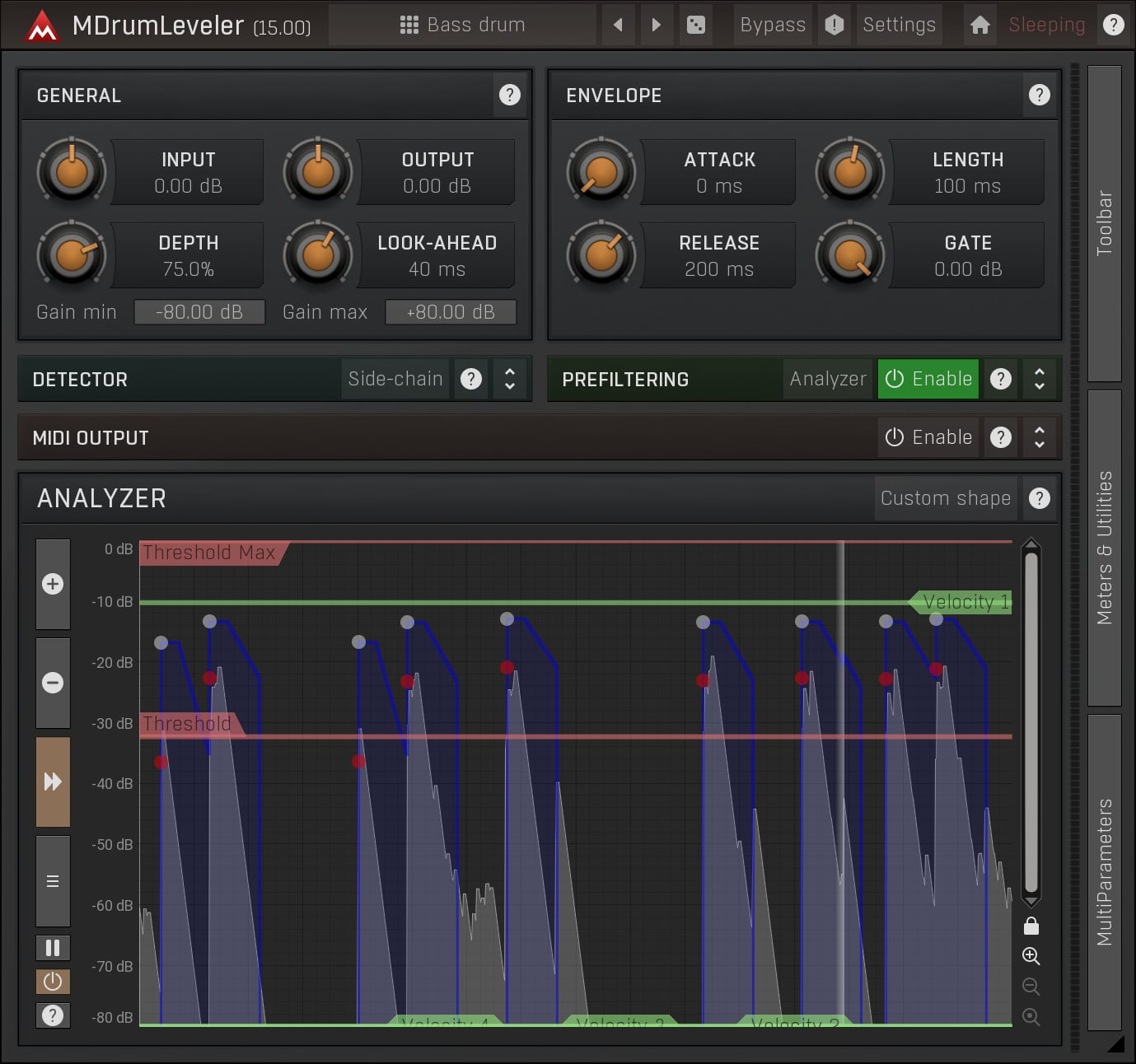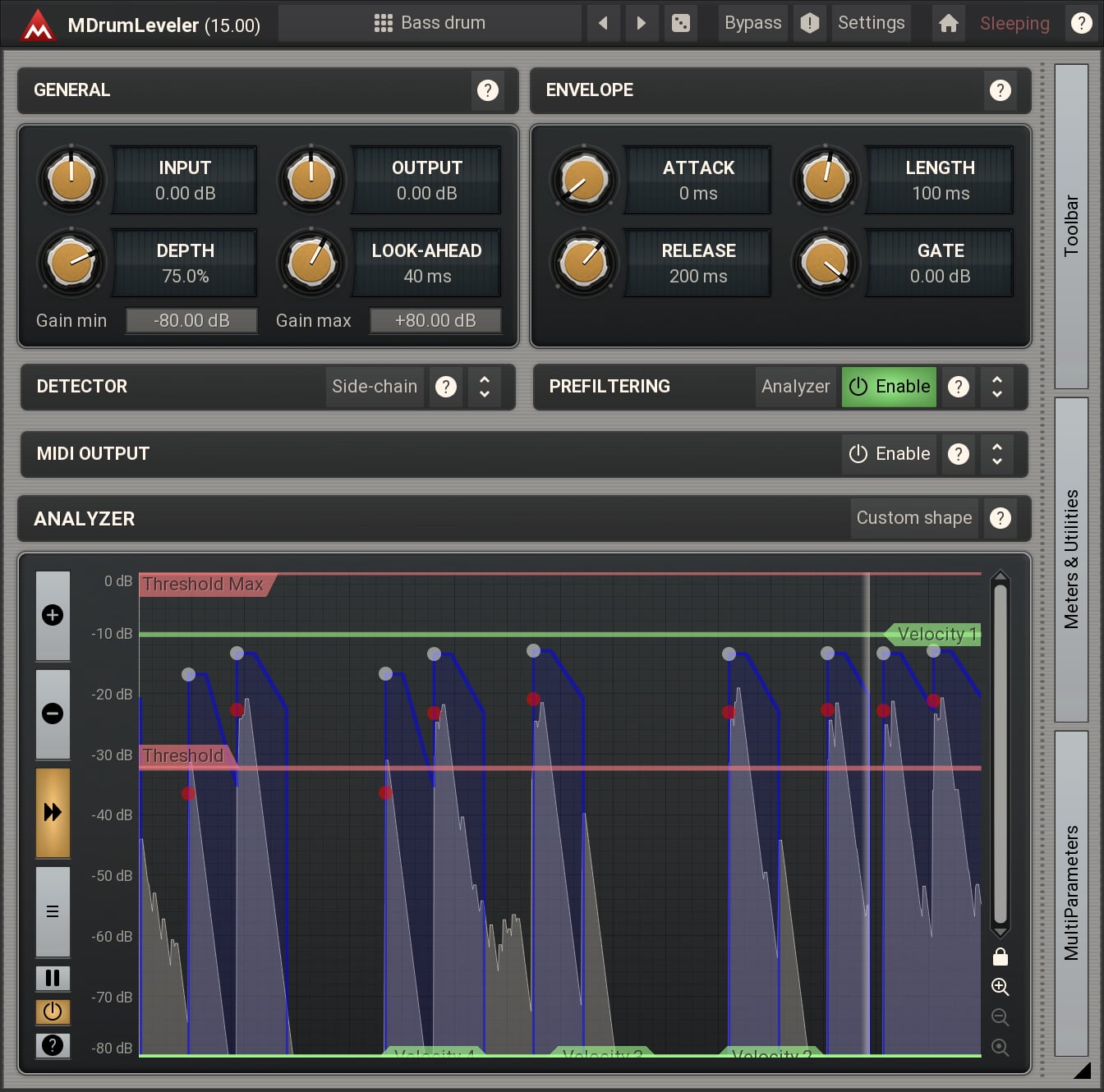 MDrumLeveler is a unique tool specially designed for drums and percussive materials. It will improve the drum performances, stabilize drum hit levels, remove leakage and ambience and let you control the drum hits better than you ever could with traditional tools.