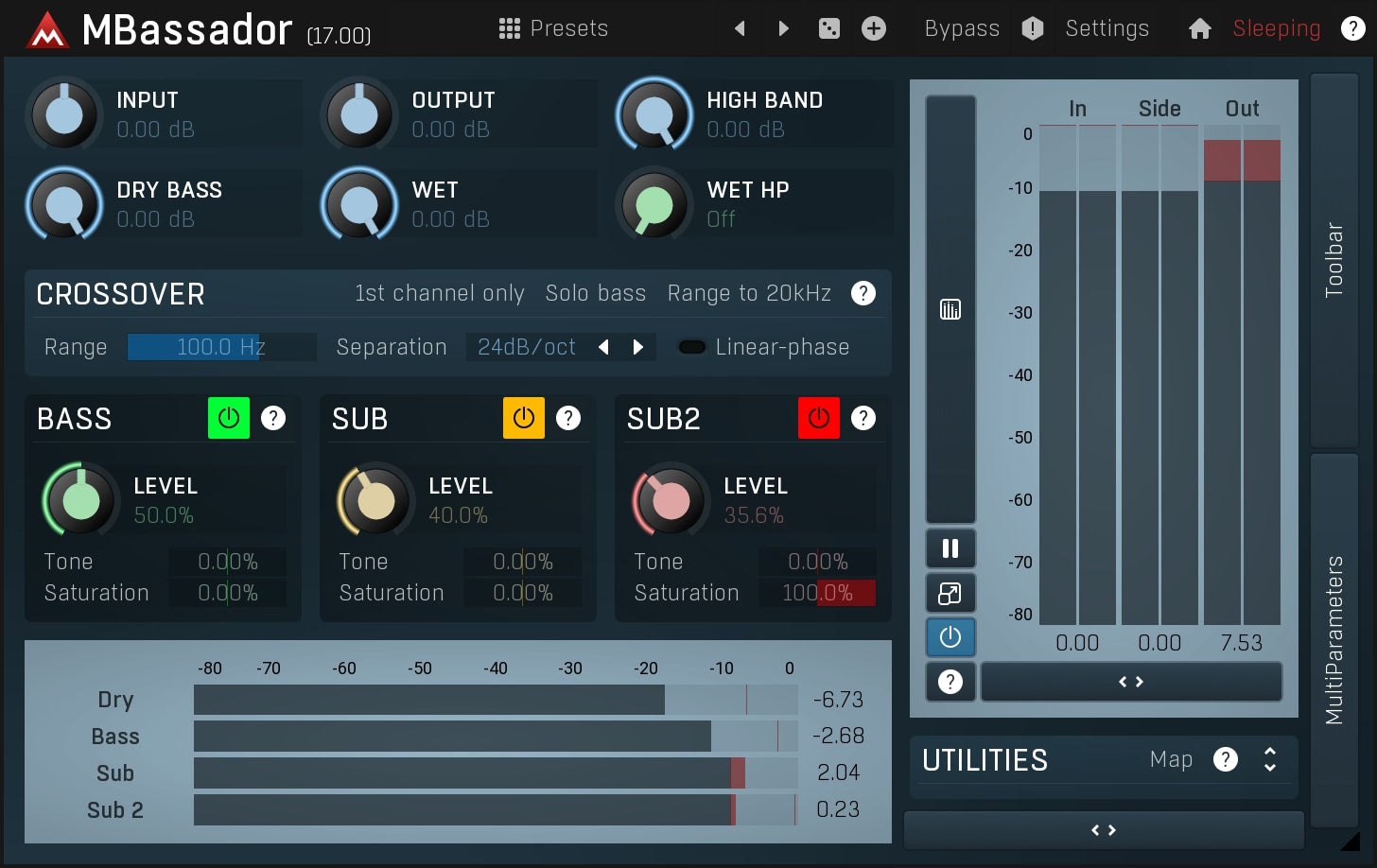 Nicht viele Menschen haben Zugang zu der Studioausrüstung, die wir beim Mischen verwenden. Das gilt besonders, wenn es darum geht, Bass- und Subbassspektren wiederzugeben. Das erste Modul in MBassador ermöglicht es Ihnen, den Bassinhalt nachzubearbeiten, sodass er stabil und straff ist und höhere Harmonien enthält, sodass er selbst bei günstigen Kopfhörern, die viele Hörer heutzutage verwenden, hörbar ist.