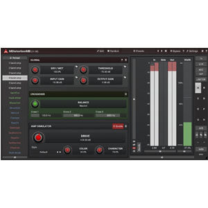 MDistortionMB implementiert eine generalisierte Amp-Simulation, anstatt Modelle bestimmter existierender Amps bereitzustellen. Es kann eine ganze Reihe von Amps simulieren und enthält eine Sammlung von 12 vordefinierten Klängen, die nach Stilen organisiert sind, einschließlich Metal oder Rock. Sie können jeden Klang mit einem umfassenden Satz von Steuerungen und einem equalizer anpassen. Es mag nicht wie Ihr Lieblingsamp klingen, aber es könnte besser klingen.