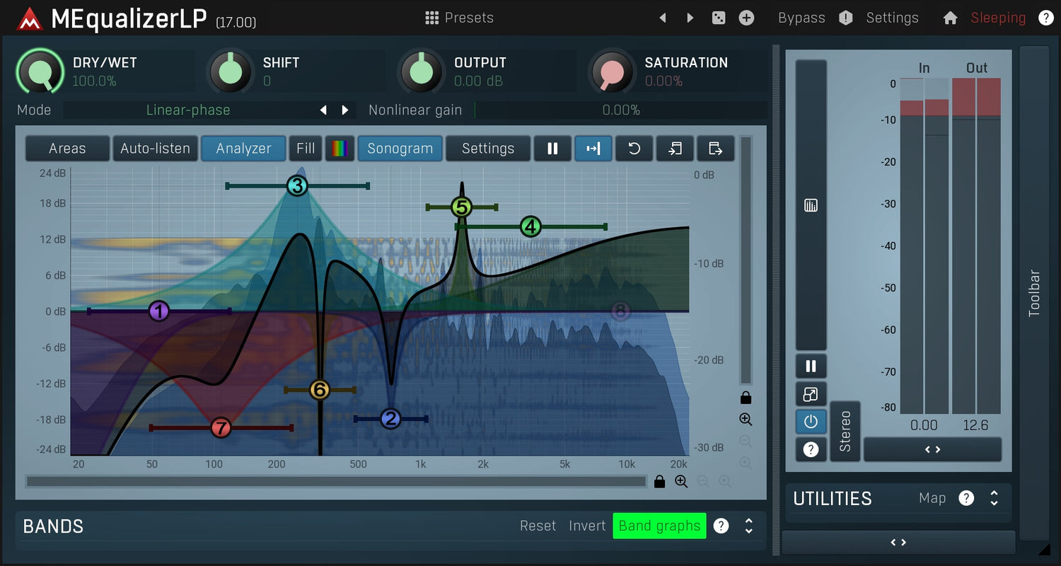 Lineare Phasen-Equalizer ermöglichen es Ihnen, mit Situationen umzugehen, in denen normale Minimum-Phasen-Equalizer einfach nicht verwendet werden können. Aber sie klingen selten wirklich gut. MEqualizerLP klingt einfach perfekt!