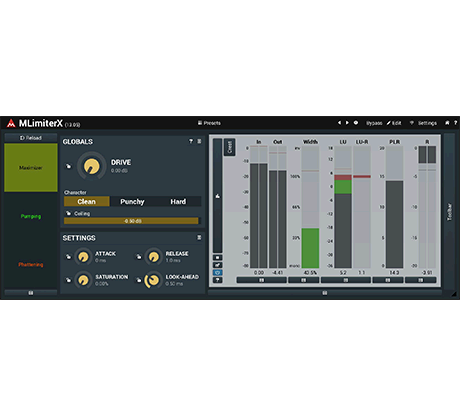 MLimiterX verfügt über unser großartiges Saturationssystem, das Ihrer Musik einen angenehmen analogen Charakter verleihen und sie sogar lauter machen kann!
