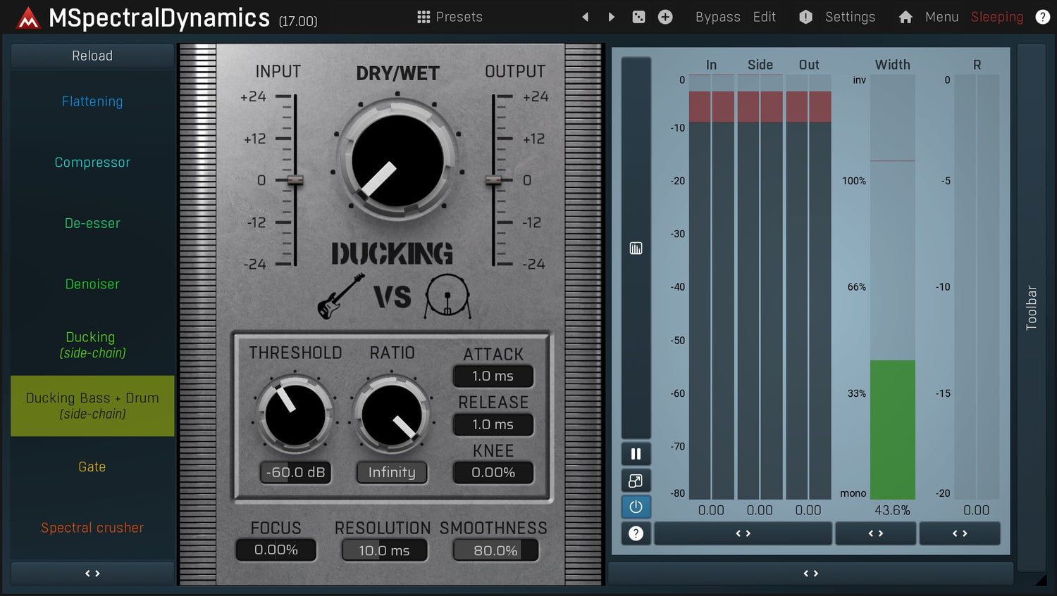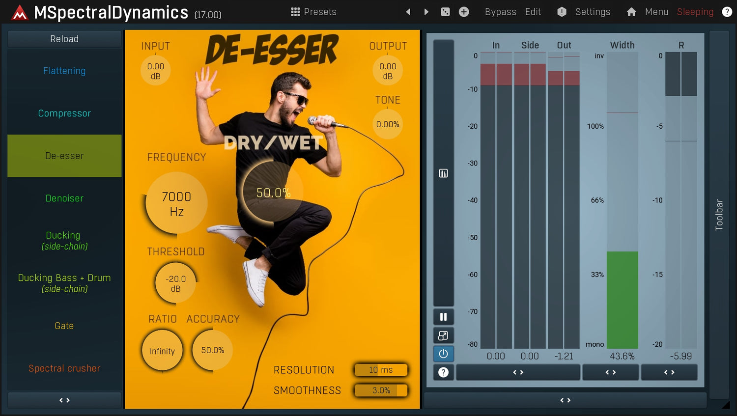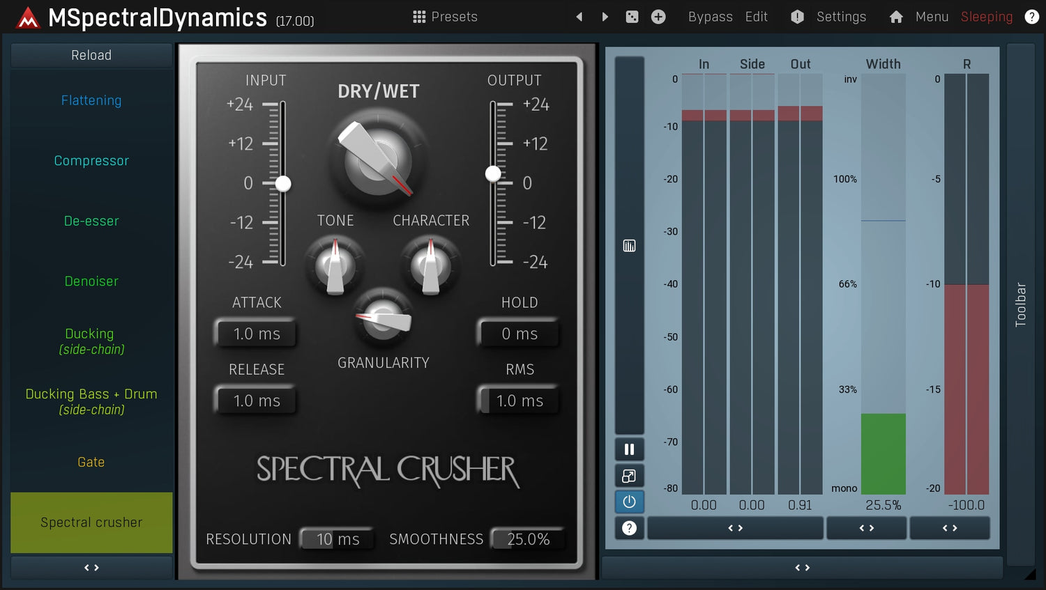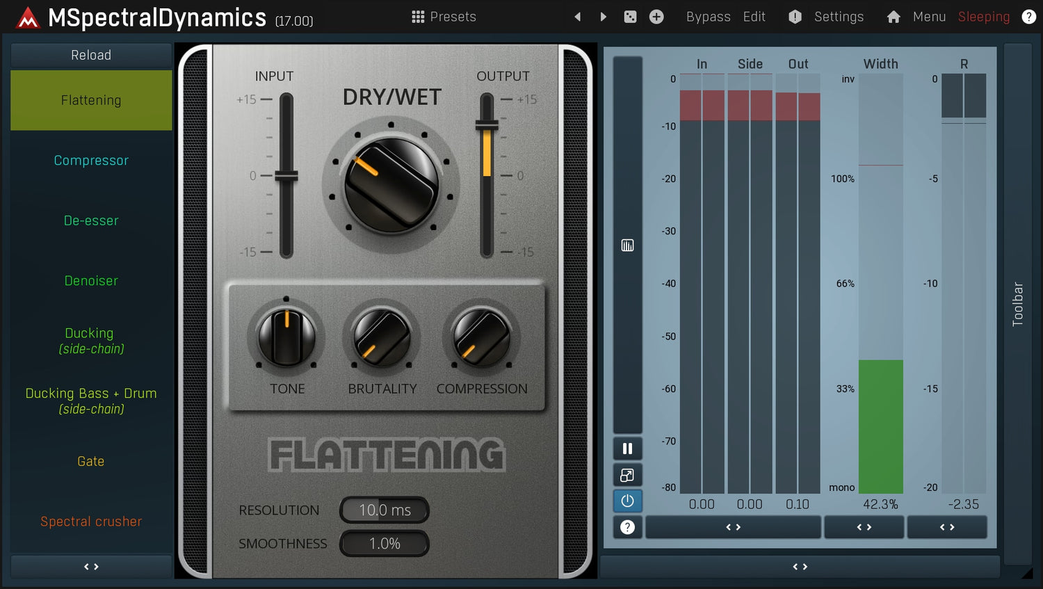 MSpectralDynamics ist eine wahre Revolution in der Audiobearbeitung. Es kann das Spektrum glätten, Kollisionen zwischen Tracks verhindern, Rauschen entfernen und unzählige neue kreative Möglichkeiten eröffnen.