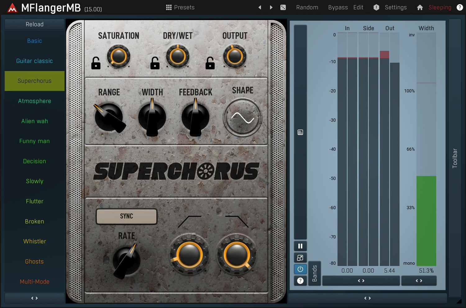 Flangers are tools with a specific character and are indispensable for guitars, and a wide range of other instruments. MFlangerMB is the top class representative, which will beat every other flanger on the market in terms of both audio quality and features.