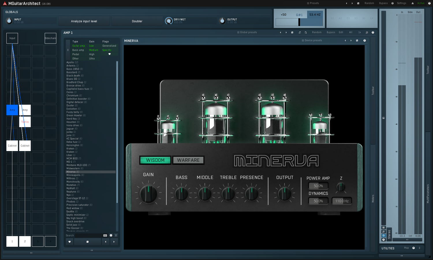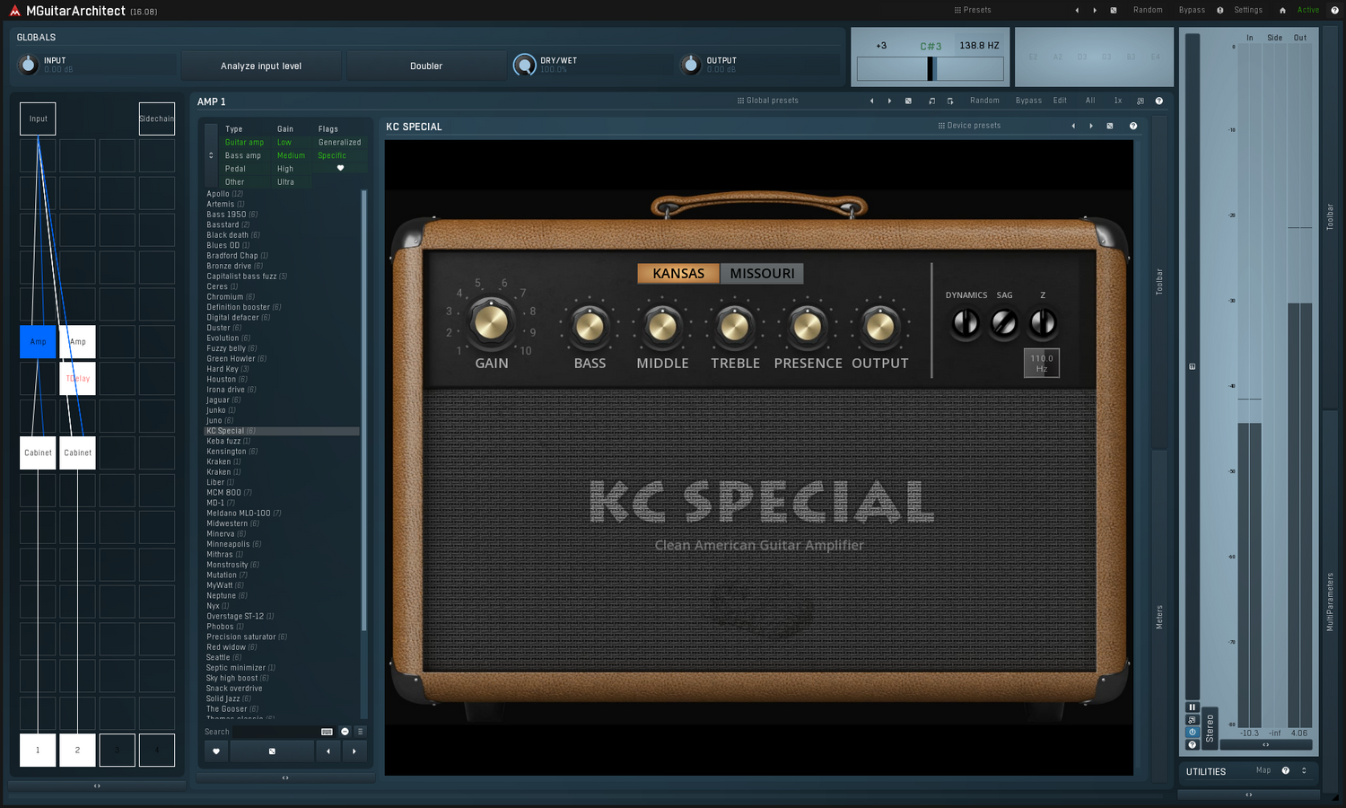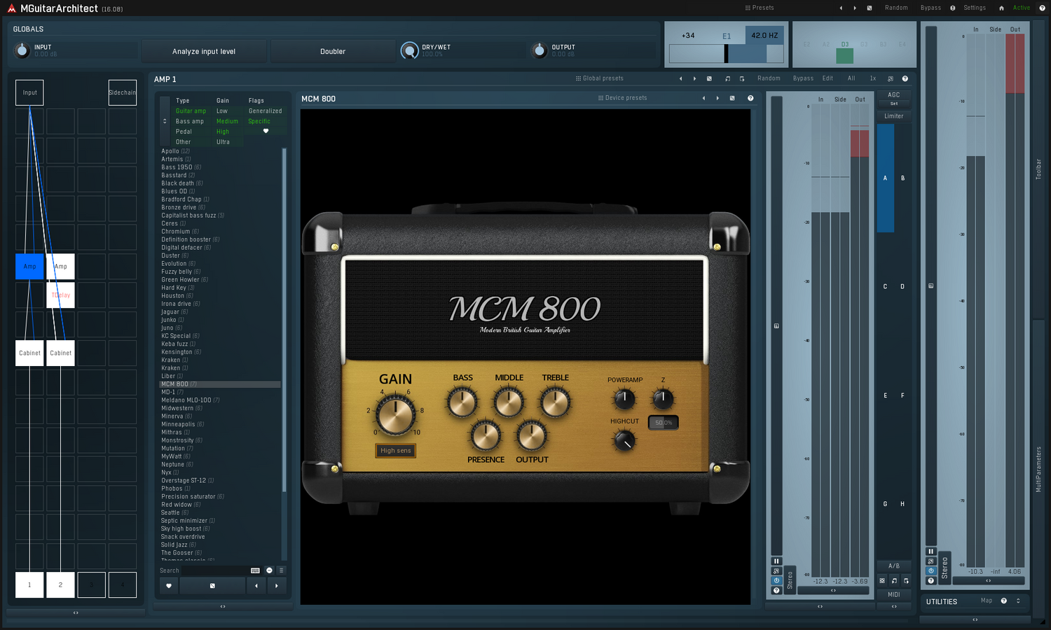 MGuitarArchitect is the guitar chain simulator with so many configurations that you’ll never get tired of trying it out. It has everything you’ll ever need for sculpting a professional guitar sound bundled into one plugin. It’s full of effects of all kinds, from amps and cabinets to EQs, compressors, and space processors. All the features are easily accessible and can be added and reordered without any hassle. And there’s a vast assortment of presets to give you amazing results with just one click.