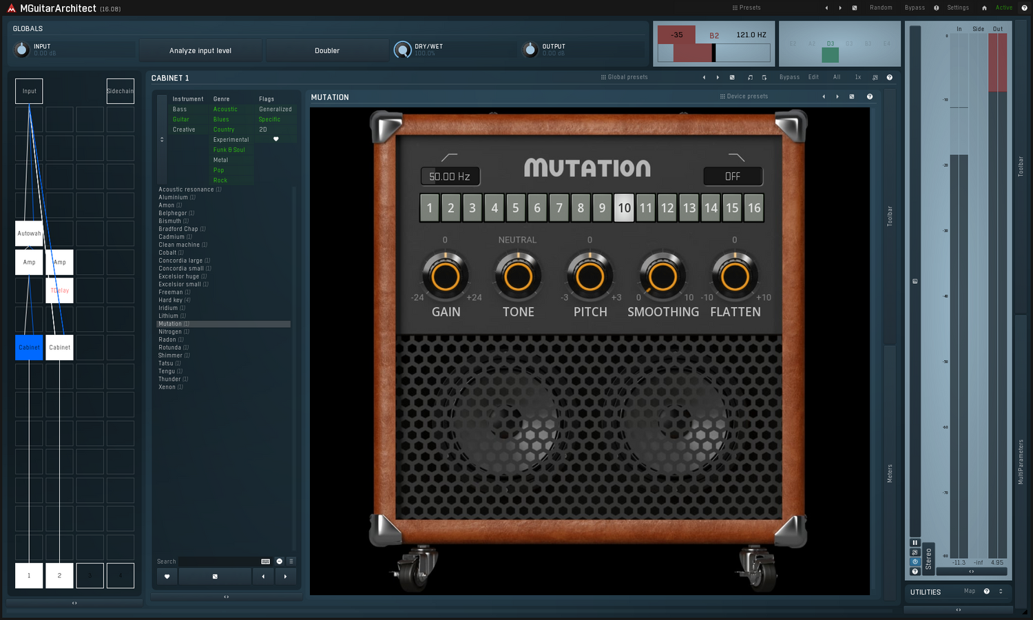 MGuitarArchitect was created with guitarists of all styles in mind. Some of the effects are organized by genre, so you can quickly reach for a country-, metal-, or even experimental-style processor. We know that there are so many artists who choose to record guitar or bass using direct inputs rather than amps. This plugin gives you the creative tools needed to sculpt a dry sound into exactly what you want. That doesn’t mean you can’t use it on tracks recorded using amps. MGuitarArchitect has all the effects you’ll need to heighten your mixing process, regardless of how the signal was recorded.