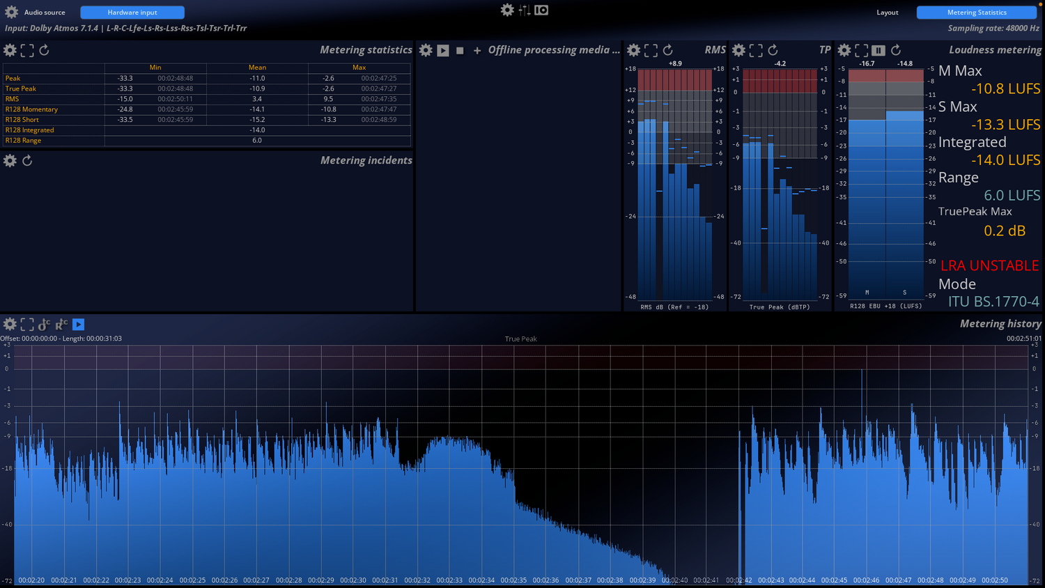 MiRA Studio bietet eine umfassende Auswahl an Analyse- und Messwerkzeugen für präzises Audio-Mixing und Mastering, zusammen mit Verlaufserfassung und Zielstatistiken für Dateipartien, einschließlich Mehrkanaldateien.