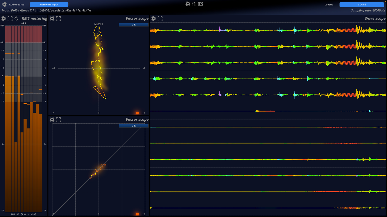 Mischen Sie mit Vertrauen und haben Sie die volle Kontrolle in einer reaktiven, Echtzeit-Umgebung. MiRA Studio ist der erste immersive Audio-Analyzer mit Unterstützung für bis zu 24 Kanäle für Workflows in Dolby® Atmos, Auro3D, NHK 22.2 und anderen Mehrkanalformaten und Lautsprecheranordnungen, mit anpassbaren Layouts und Arbeitsbereichen, die auf Ihre spezifischen Bedürfnisse zugeschnitten sind.