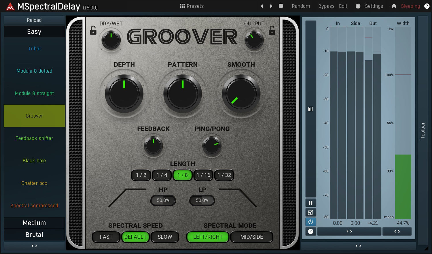MSpectralDelay is a unique creative delay plugin, which works in the spectral domain and lets you perform various transformations on the delayed signal - from changing pitch to arbitrarily transforming individual frequencies. It's complex, but it is still easy-to-use for the beginners.
