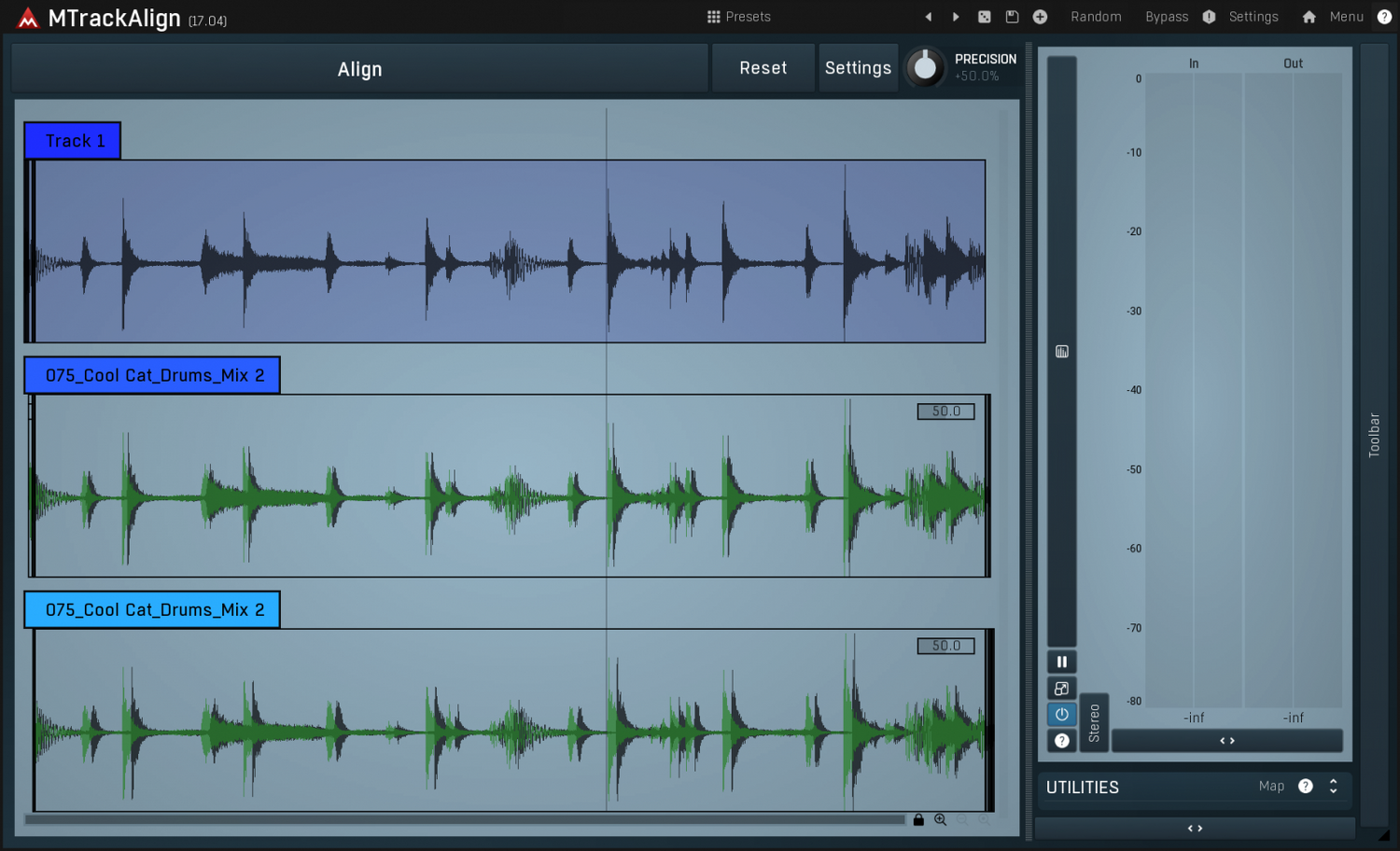 Erziele den präzisen, professionellen Sound, von dem du schon immer geträumt hast. Egal ob Gitarren-Double-Tracks, Synth-Bässe-Layering oder die Feinabstimmung einer kompletten Rhythmusgruppe – MTrackAlign sorgt für perfekte Präzision bei jedem Ton. Nutze deine präziseste Gitarren- oder Bass-Aufnahme als Vorlage und fixiere alle anderen Spuren sofort. Das Ergebnis ist ein solides Fundament mit unvergleichlicher Durchsetzungskraft und Klarheit, frei von Phasenproblemen und unerwünschten Übersteuerungen, die manuell bearbeitete Spuren oft plagen.
