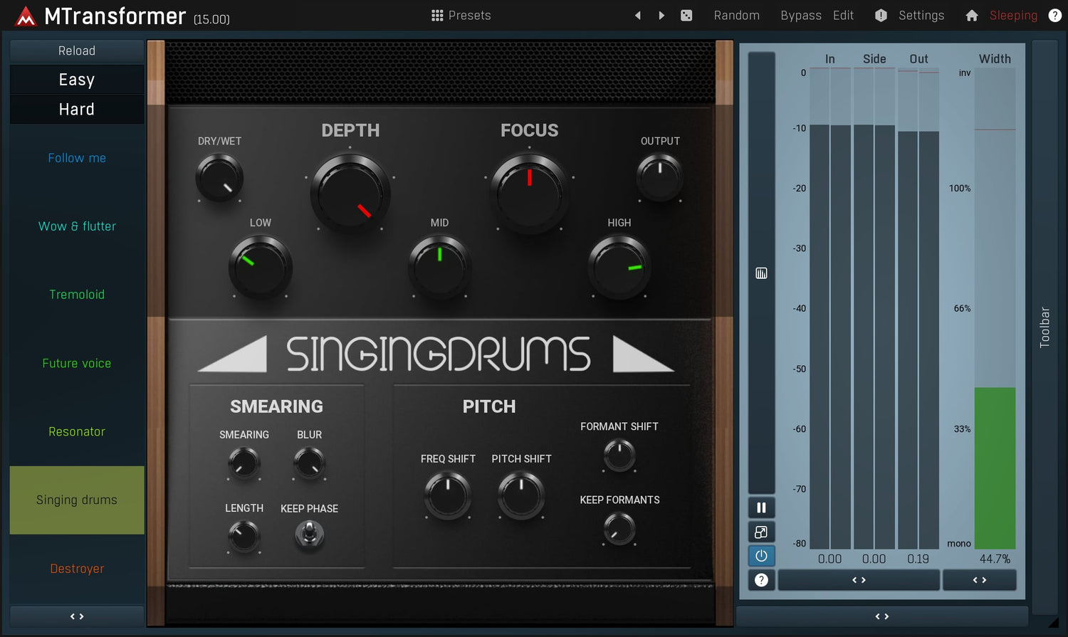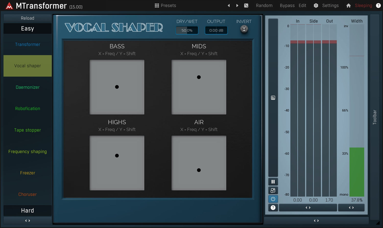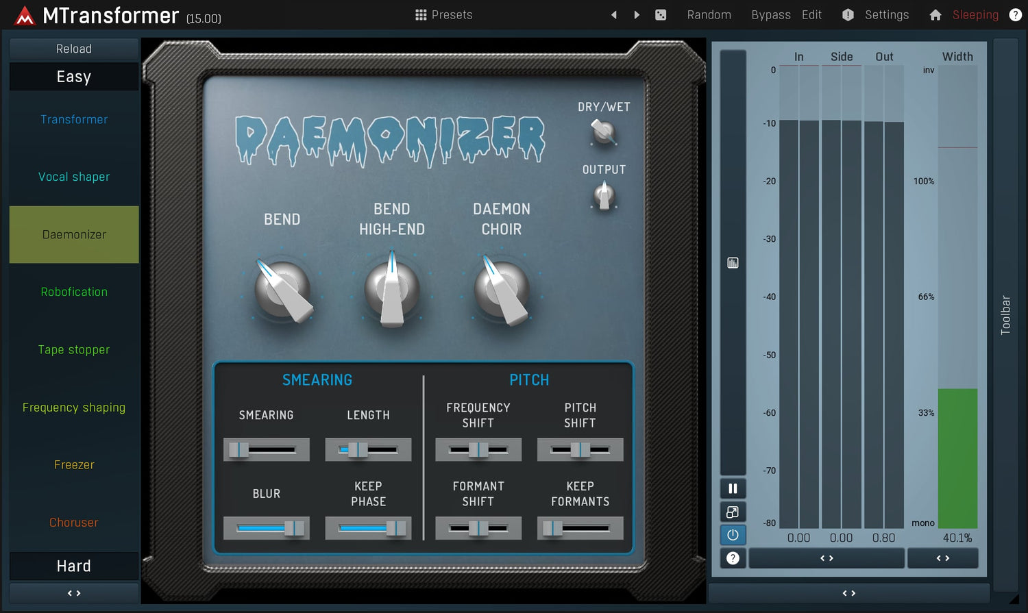 Pitch shifting, frequency shifting, daemonic and robotic voices... that's MTransformer, a unique spectral processor that lets you transform any frequency to any other, transform their levels.