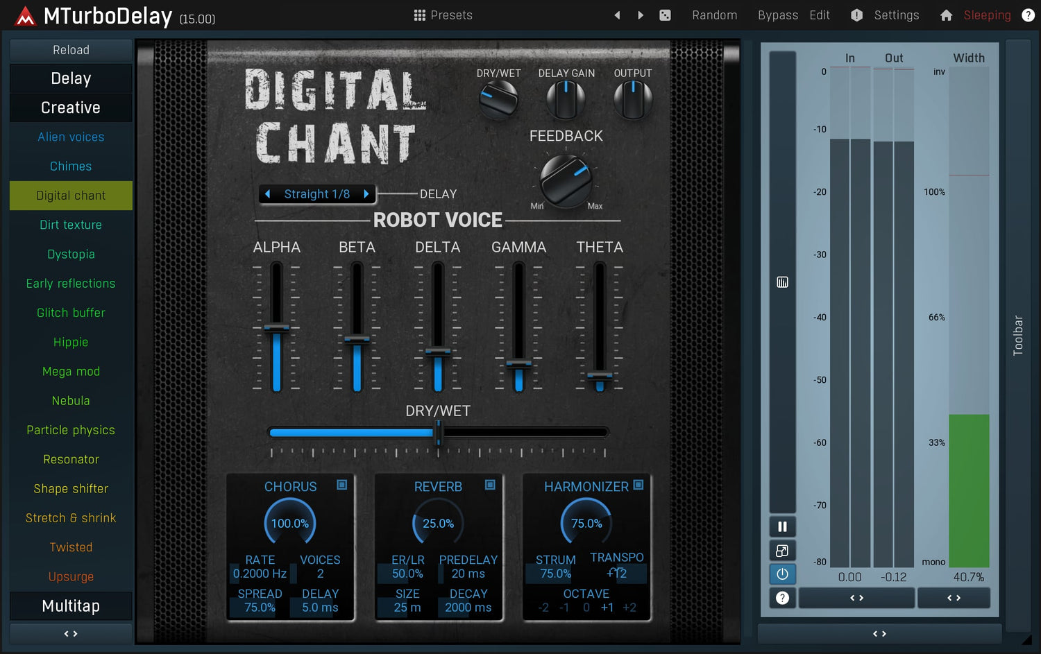 MTurboDelay is the ultimate delay providing 40 delay plugins in a single beast. That means 40 completely different delay designs inspired by both analog and digital worlds, brought to a whole new level.