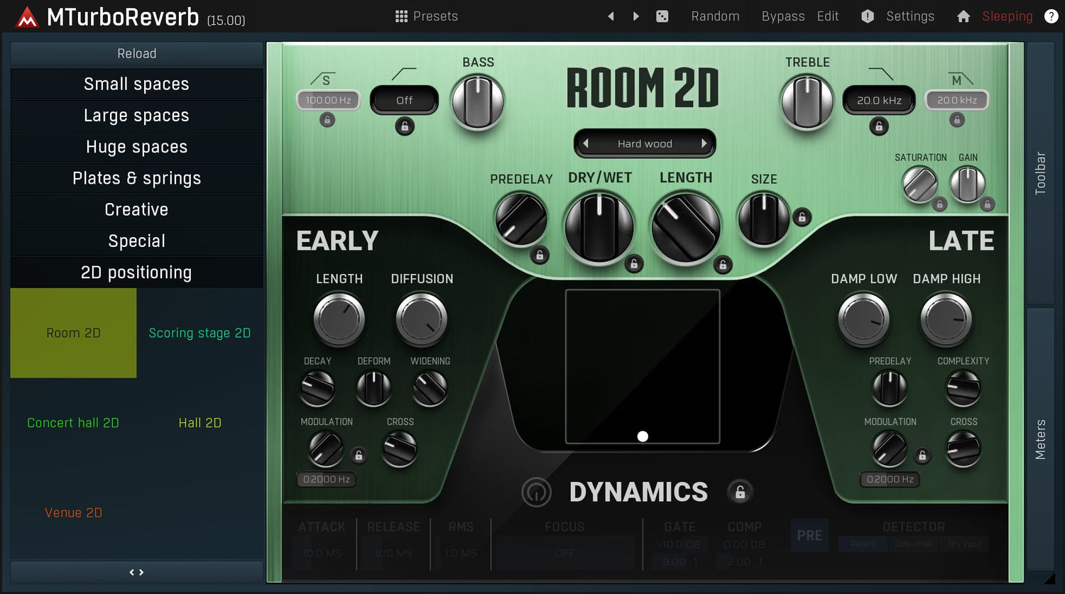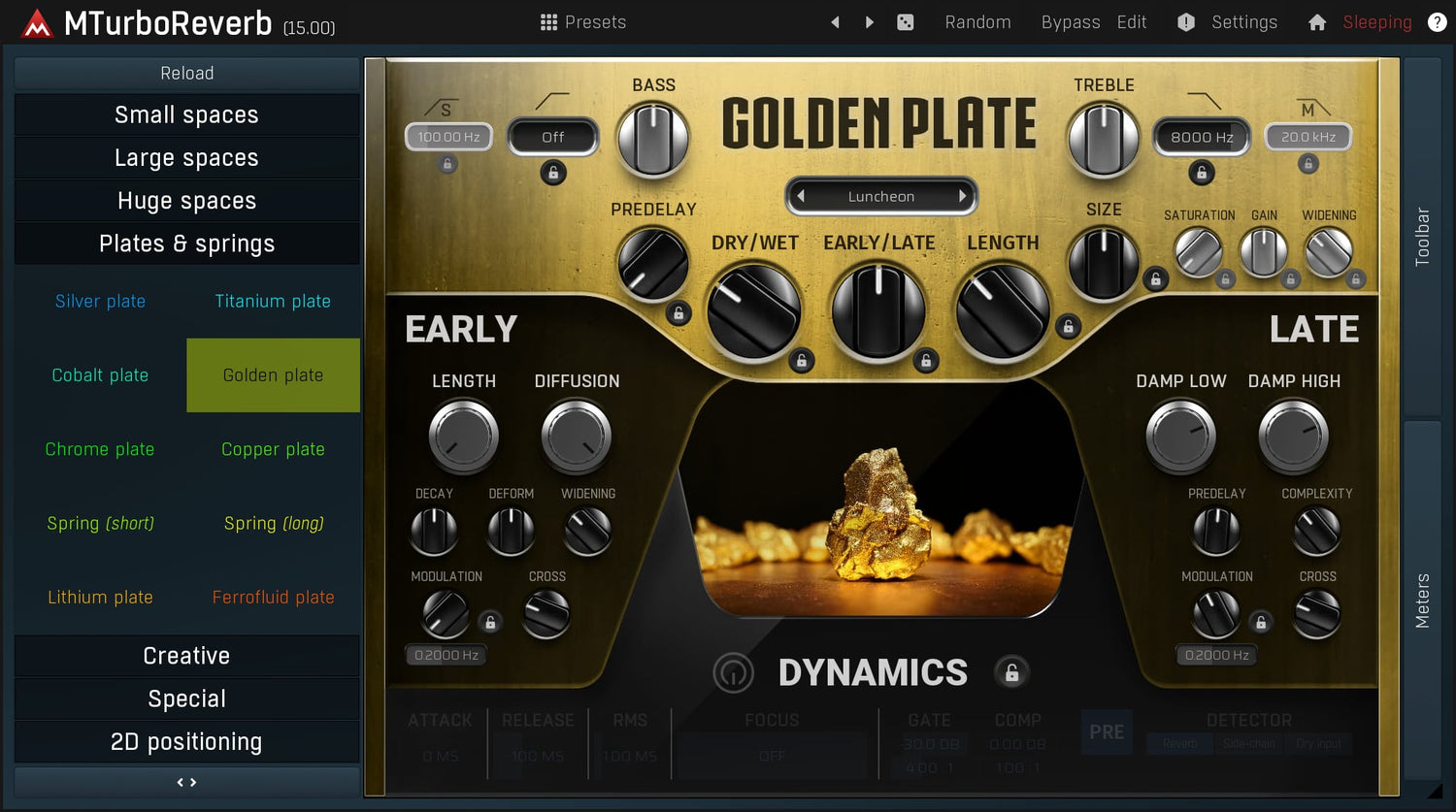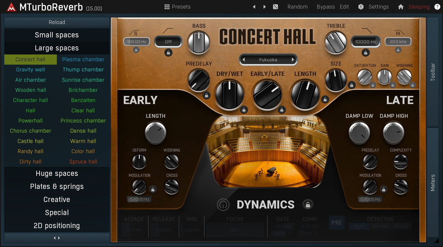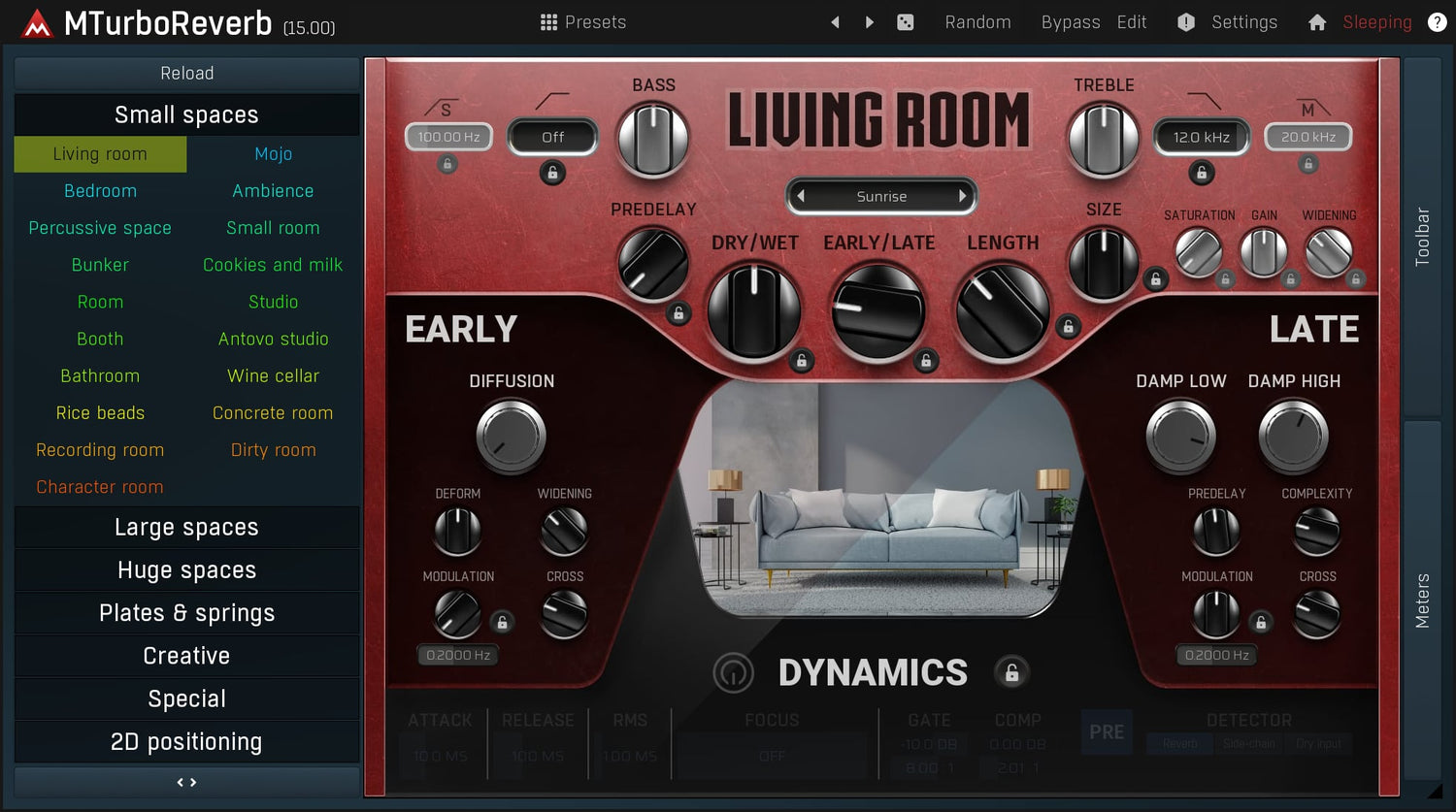 MTurboReverb is a revolutionary algorithmic reverb, which features about 100 superb sounding reverbs in a single plugin and even lets you design your own reverb algorithms. It is quick, easy-to-use, perfect for mixing, mastering and creative production.