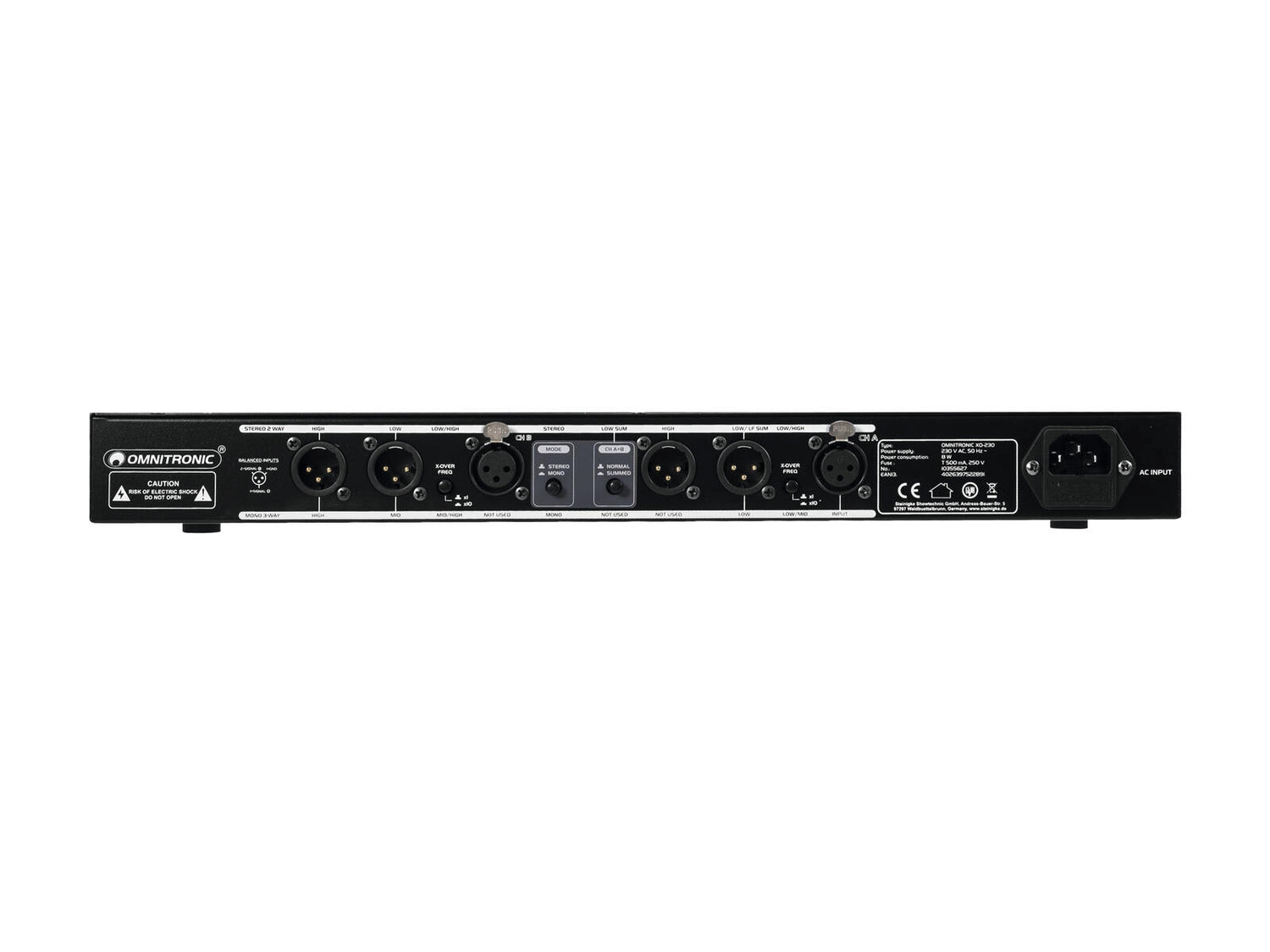 Omnitronic XO-230 Active Crossover er en professionel analog crossover designet til præcis opdeling af frekvenser i PA-systemer, installationer og studieopsætninger. Enheden kan konfigureres til både 2-vejs stereo og 3-vejs mono drift, hvilket gør den velegnet til alt fra klubinstallationer og scener til øvelokaler og studiebrug.