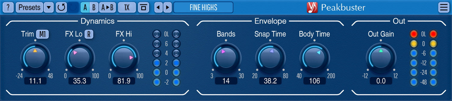 Peakbuster is a multi-band transient enhancer effect plug-in that uses an advanced automatic algorithm.