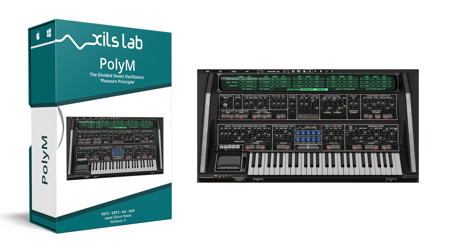 More than two years were spent analyzing the Polymoog synthesizer. It convinced XILS-Lab that the most important part in recreating the true character of the sound was the Top Octave Divider Oscillators. So, during several months, they worked on modeling the Polymoog's oscillators in a way no one else had before. They successfully developed a Divide Down algorithm that brings out the true sound of the Polymoog.