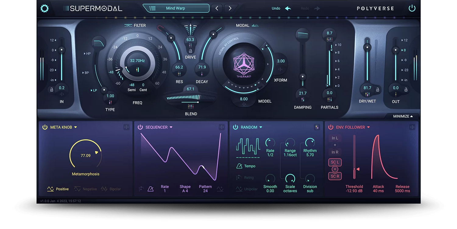 Supermodal ist ein Modal-Filter mit unvergleichlichen Sounddesign-Fähigkeiten. Es ist ein „Meta-Filter“, der Hunderte von chirurgisch präzisen Bandpassfiltern nutzt, um die resonanten Eigenschaften verschiedener Objekte zu modellieren.