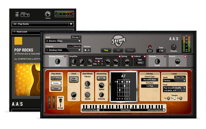 By combining Strum GS-2's Guitar, Keyboard, and Loop modes along with preset variations, all your guitar parts are covered. Whether it's a lead sound or doubling takes, the core elements are at your disposal to add character or give a more organic sound to your song arrangement.