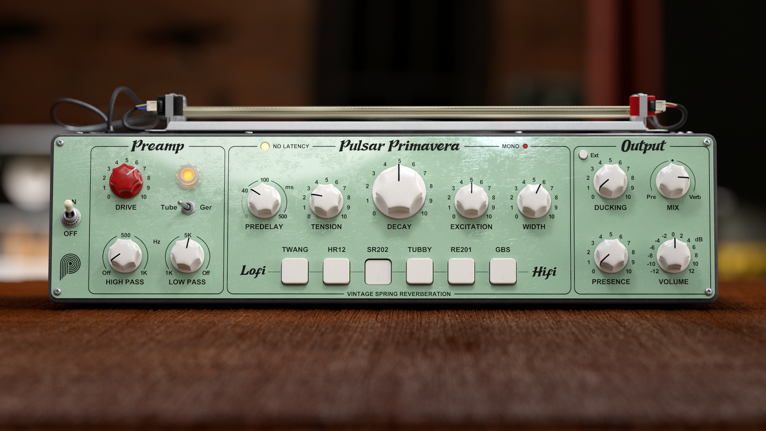 Pulsar Primavera is a 6-in-1 reverberation plugin that includes devices heard on countless hits throughout the ages. From lo-fi to hi-fi, each tank precisely emulates the original units' electronic and mechanical behavior. Furthermore, exclusive spring tension and excitation controls offer a wider sound palette than typical convolution models.