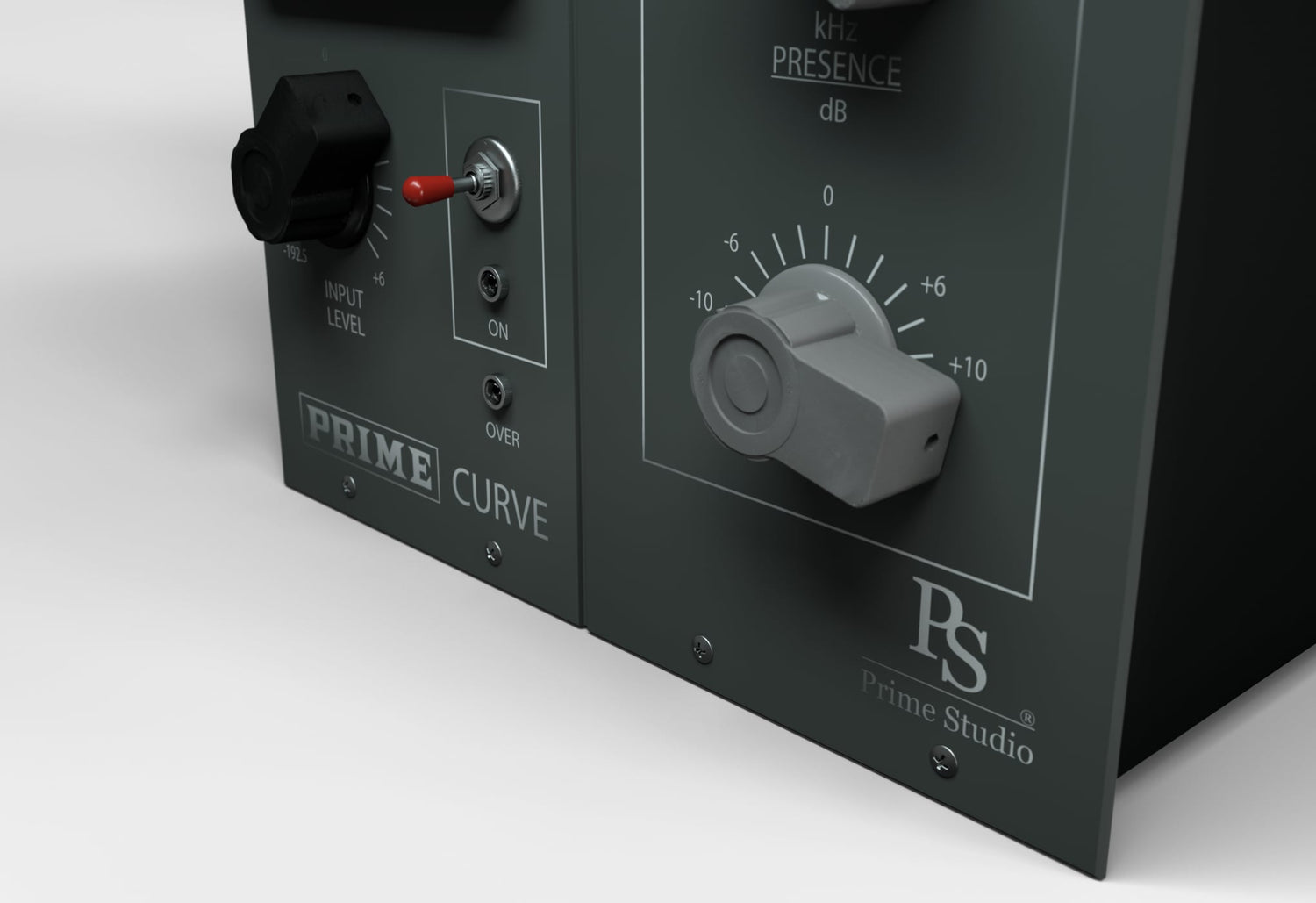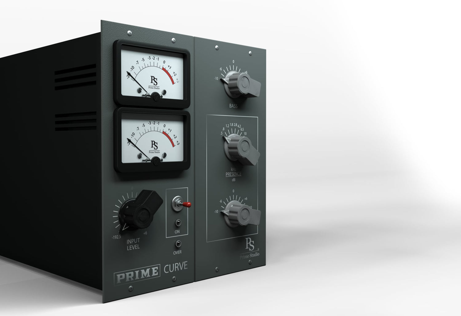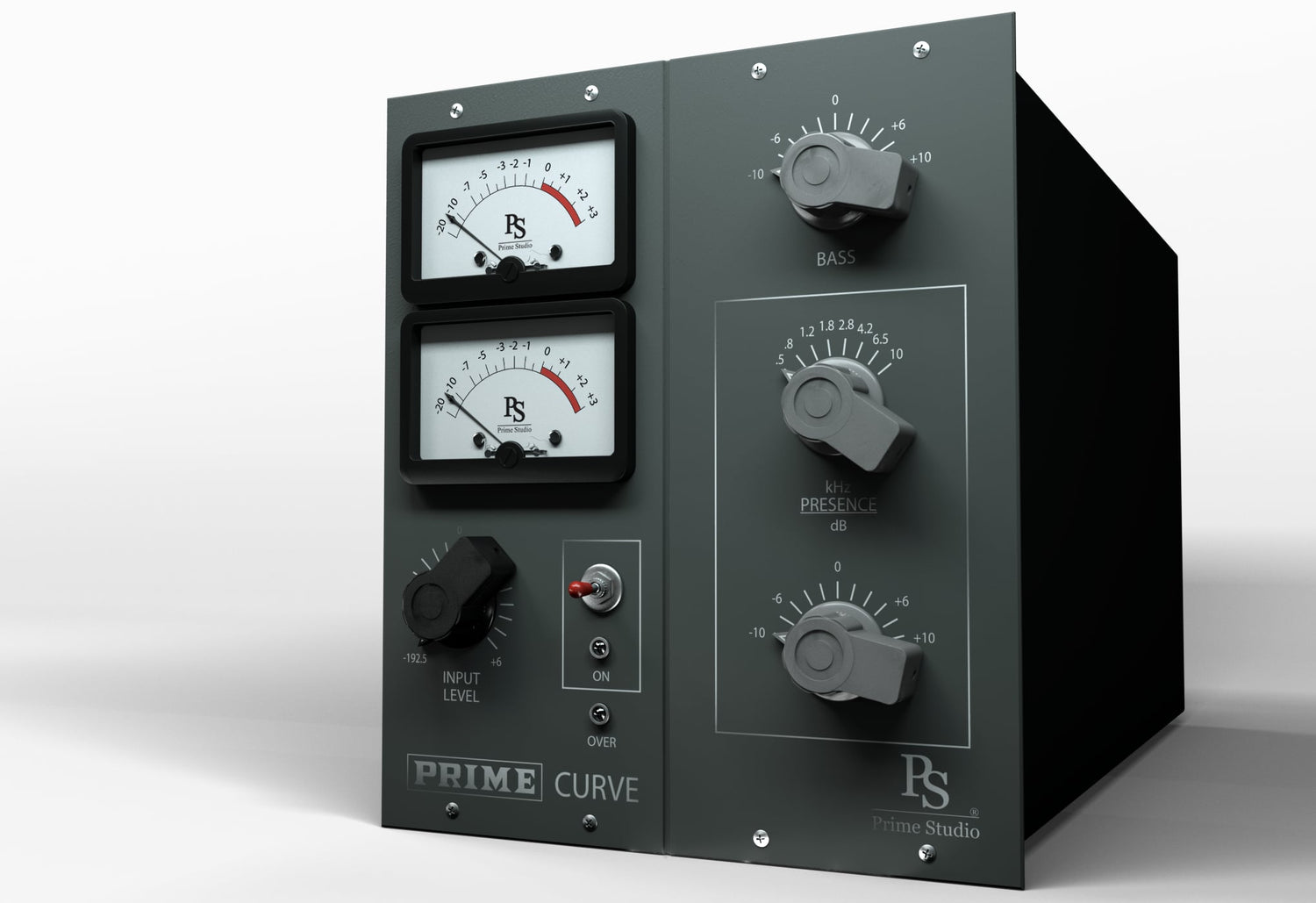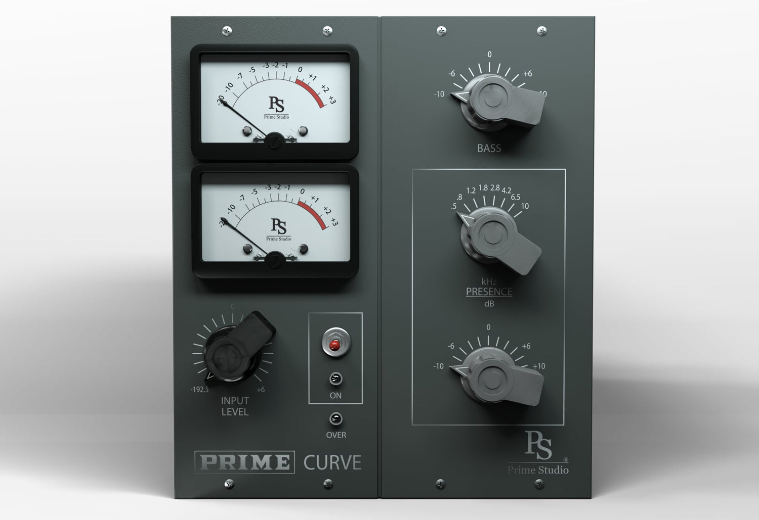 Um den Konsolenkanal zu vervollständigen, der in Kombination mit Prime Studio® Prime Mix und Prime Studio® Compressor verwendet wird, bietet Curve zusätzliche Bass- und Präsenzfrequenzen von musikalisch klingenden 500, 800, 1.200, 1.800, 2.800, 4.200, 6.500 und 10.000 Hz, während die harmonische Vorverstärkerverzerrung mit dem Eingangspegelregler eingestellt wird. Bleiben Sie immer in Kontrolle über Ihre Signalpegel mit den VU-Stil Eingangs- und Ausgangsmessgeräten.
