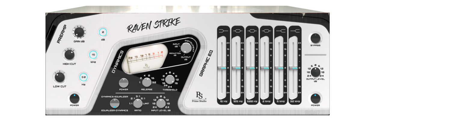 Raven Strike ist ein Mono / Stereo Channel Strip Plug-in mit drei kombinierbaren Werkzeugen, die den Klang Ihrer Tracks färben.