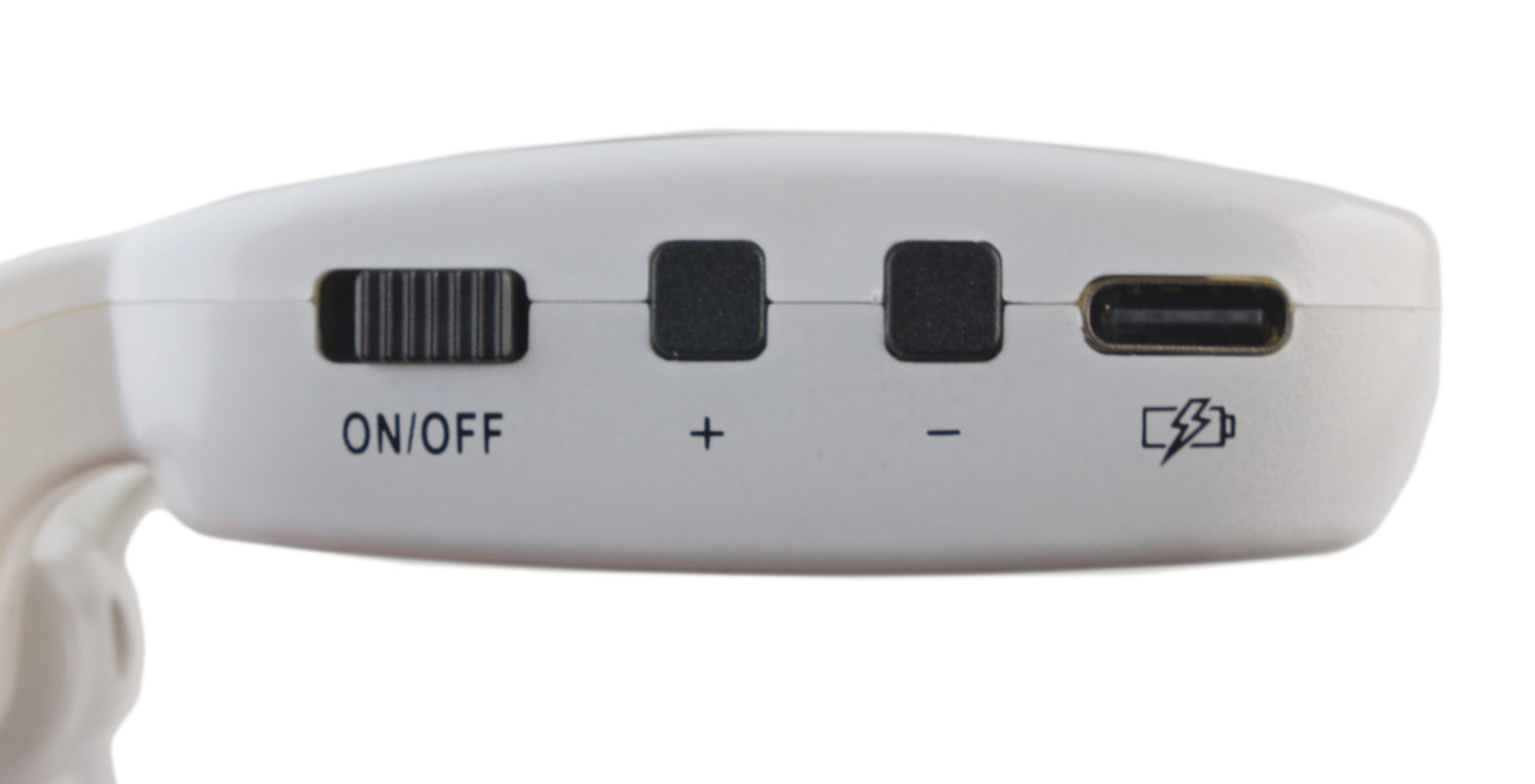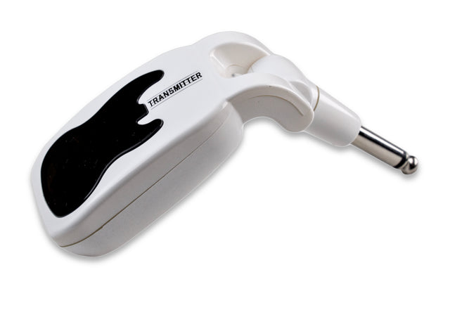 UHF wireless guitar system with a foldable plug. Rechargeable microphone, selectable frequencies, and a range of up to 50 meters.