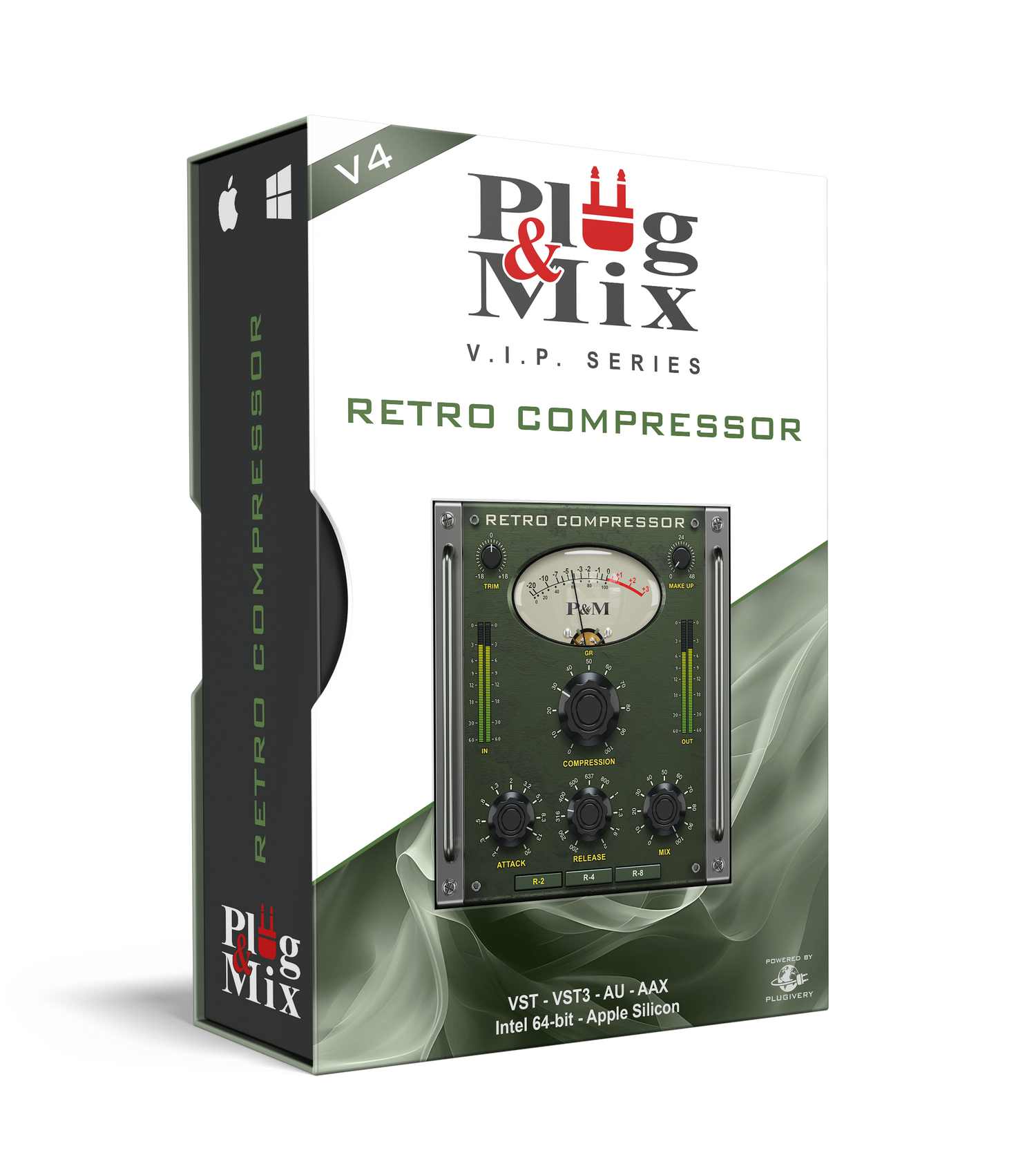 Wählen Sie zwischen den Einstellungen R-2, R-4 und R-8 für zunehmend intensive Kompression – ideal für Drums, Gesang und alle Instrumente, die mehr Druck benötigen. Retro Compressor ist das perfekte Werkzeug, um einen Mix zu straffen und ihm Wärme, Kontrolle und zeitlosen Charakter zu verleihen.
