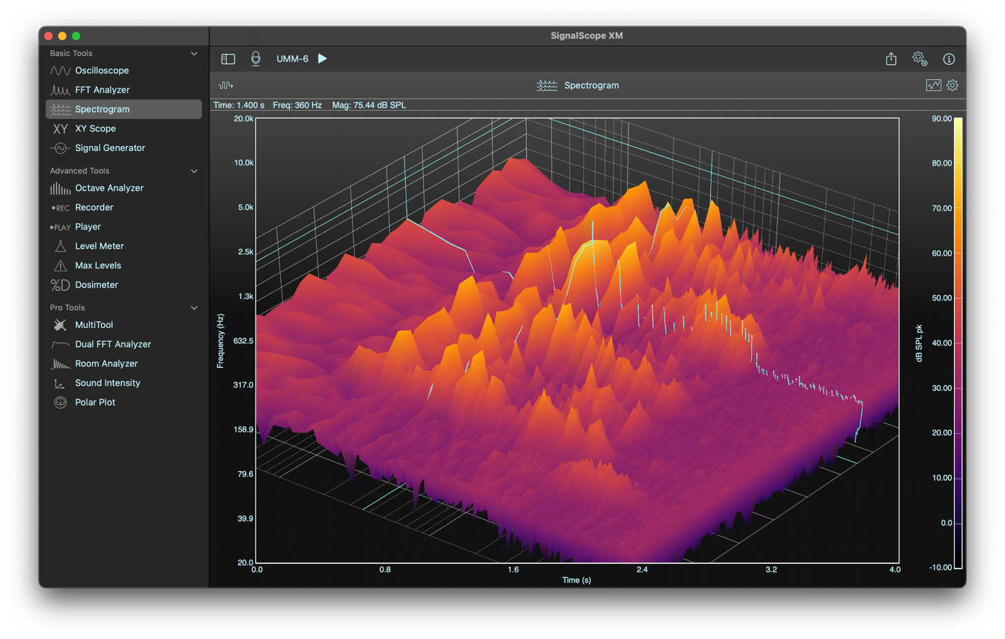 - Analyze signals coming from any available audio input device connected to your Mac.
