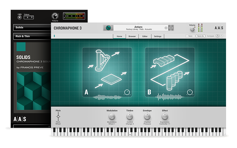 Applied Acoustics Systems releases the Solids sound pack for the Chromaphone and AAS Player plug-ins in collaboration with AAS newcomer sound designer Francis Preve of Symplesound. Solids joins the rank of Chromaphone’s sound pack series which now add up to 10 titles and is available also in Chromophone & Packs Bundle.