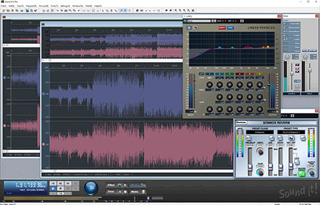 Internet Co. Sound It! 8 Basic bietet Toningenieuren eine vielseitige Software zum Aufnehmen, Bearbeiten und Verarbeiten von hochauflösenden 2-Spur-Audio mit bis zu 192 kHz / 24-Bit für Musik, Film, Fernsehen, Radio und Live-Sound-Anwendungen.