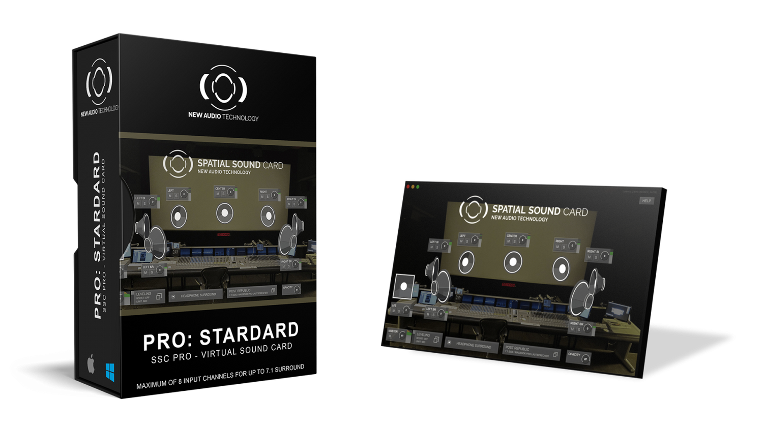 Diese Version von SSC bietet Eingänge für Audiosysteme bis zu 7.1, einschließlich DAW-Ausgängen, Spielen und DVD- oder Mediaplayern wie VLC, YouTube und Netflix. Sie bietet vollen Zugriff auf professionelle Funktionen.
