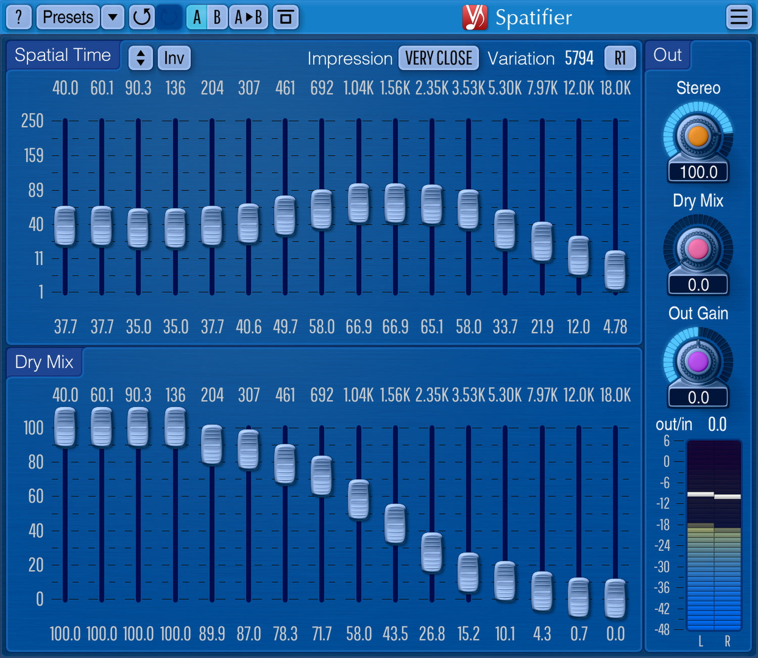 Spatifier ist ein AU- und VST-Plugin zur räumlichen Klangverbesserung von Mono- zu Stereospuren für professionelle Ton- und Musikproduktionsanwendungen. Mit diesem Plugin lassen sich Monospuren effektiv in räumlich verbesserte Stereospuren umwandeln: Es eignet sich hervorragend für cleane und verzerrte Gitarren, Synthesizer, Klavier, Orgel, Backing Vocals und andere Klänge. Darüber hinaus kann Spatifier verwendet werden, um den Klang von Hallsignalen zu verdichten und dünnen, flachen Sounds mehr Fülle zu verleihen.