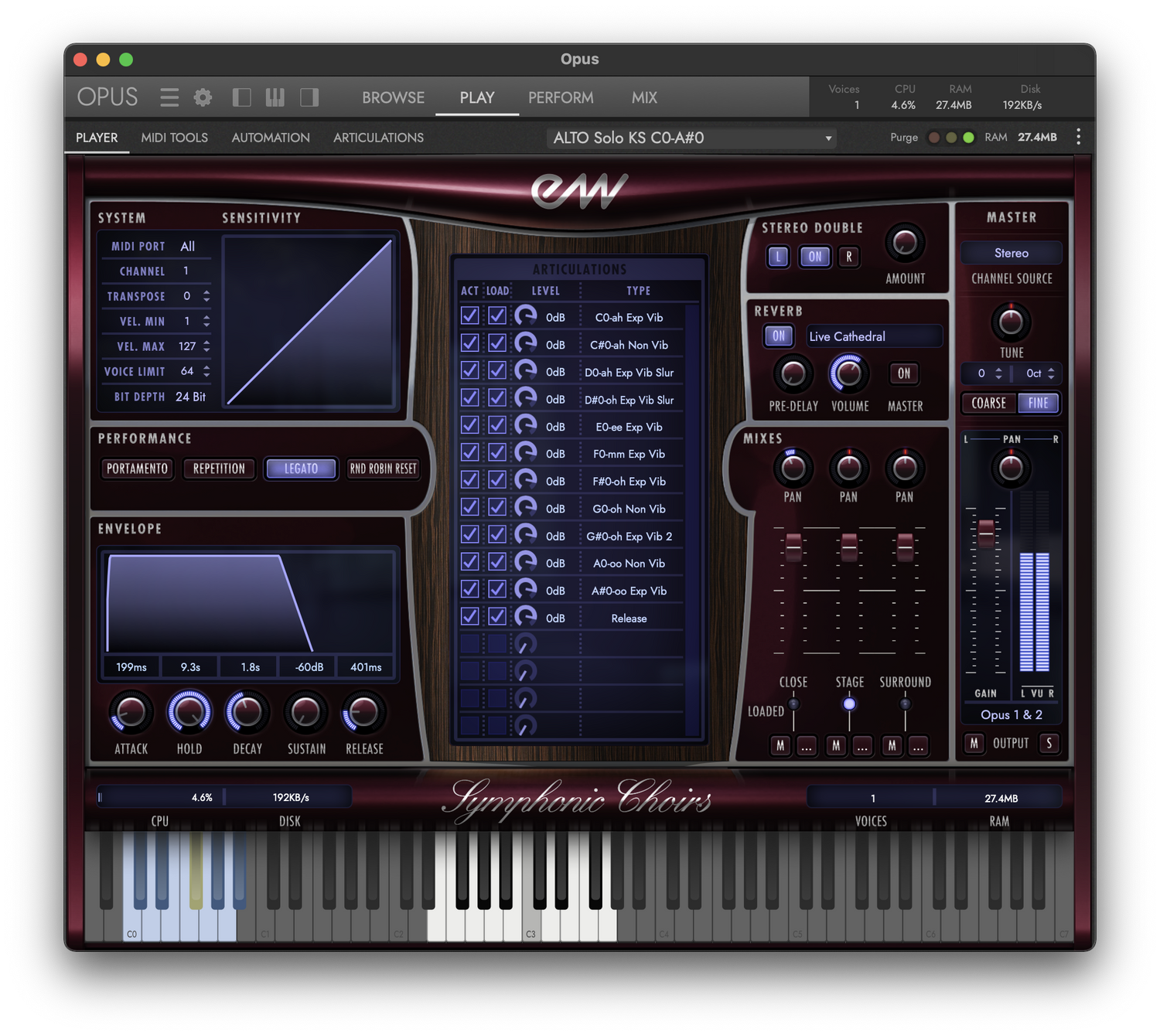 Stellen Sie sich vor, Sie tippen Wörter in Ihren Computer, in jeder Sprache, und hören einen weltklasse Chor, der sie in jedem Schlüssel singt, den Sie in Ihre Sitzung spielen. Aufgenommen im selben Konzertsaal wie EastWest’s Symphonic Orchestra, verschmelzen diese beiden nahtlos zu einem leistungsstarken Set von Werkzeugen, um ein großes Ensemble in jedem Song nachzubilden. Symphonic Choirs gibt Ihnen die Möglichkeit, jede Sektion eines herkömmlichen Chors separat zu steuern, mit der Ergänzung eines Knabenchores. Entwickelt mit Blick auf Film- und Videospielkomponisten ermöglichen die einstellbaren Mikrofonpositionen, dass Sie das genaue Stereo-Bild entwerfen, das den größten Einfluss auf Ihre Mischungen hat.