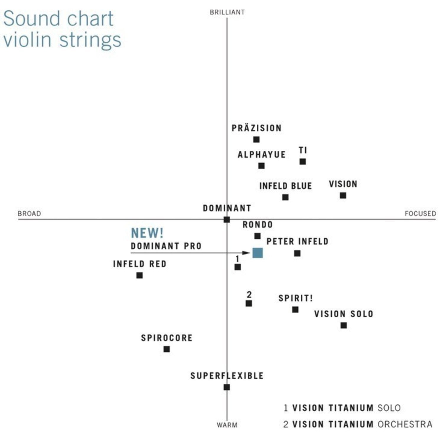 - String for soloists, great dynamics, deep timbres, intense focus, compact and projecting, fast bow response.