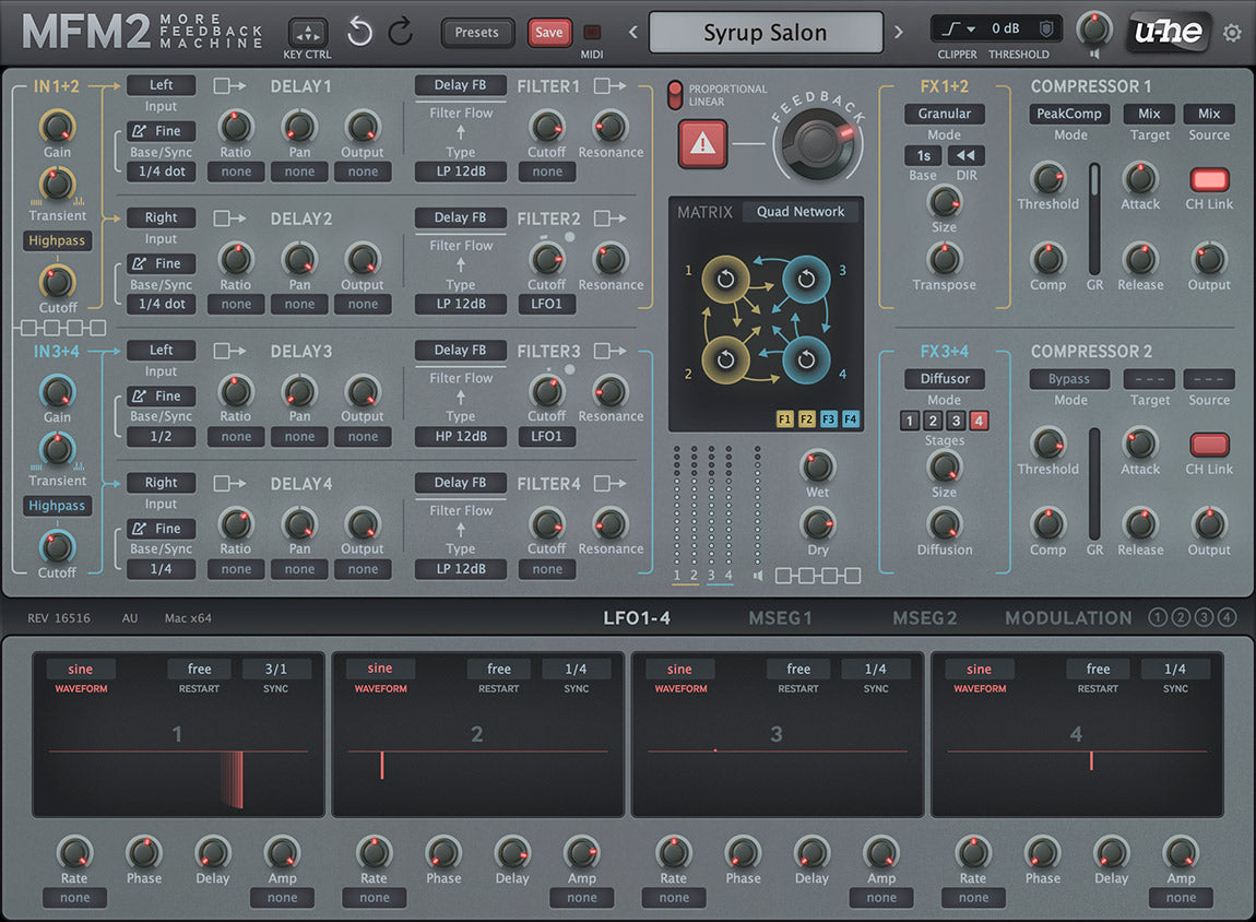 MFM2 ist unser überragendes digitales Delay-Plugin. Sie können alles von subtilen texturierten Echos bis hin zu riesigen räumlichen Reverbs erstellen, von wilden tonalen Schritten auf einem Pad bis hin zu rhythmischer Dekonstruktion eines Drum-Tracks. Als reguläres Delay bietet MFM2 bereits so viel Kontrolle und Inspiration wie möglich, während die erweiterten Funktionen in Version 2.5 neue Horizonte eröffnen. Mehr Feedback, mehr Kontrolle, mehr Inspiration!