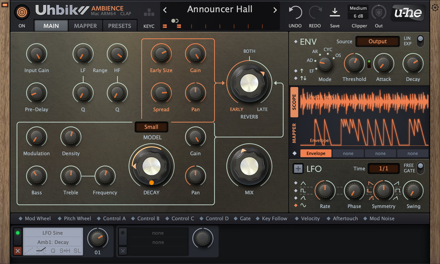 - Uhbik Ambience (Reverb) – Von intimen Räumen bis hin zu weiten Atmosphären im Weltraum, kombiniert frühe Reflexionen mit vielseitigen Platten-Algorithmen.