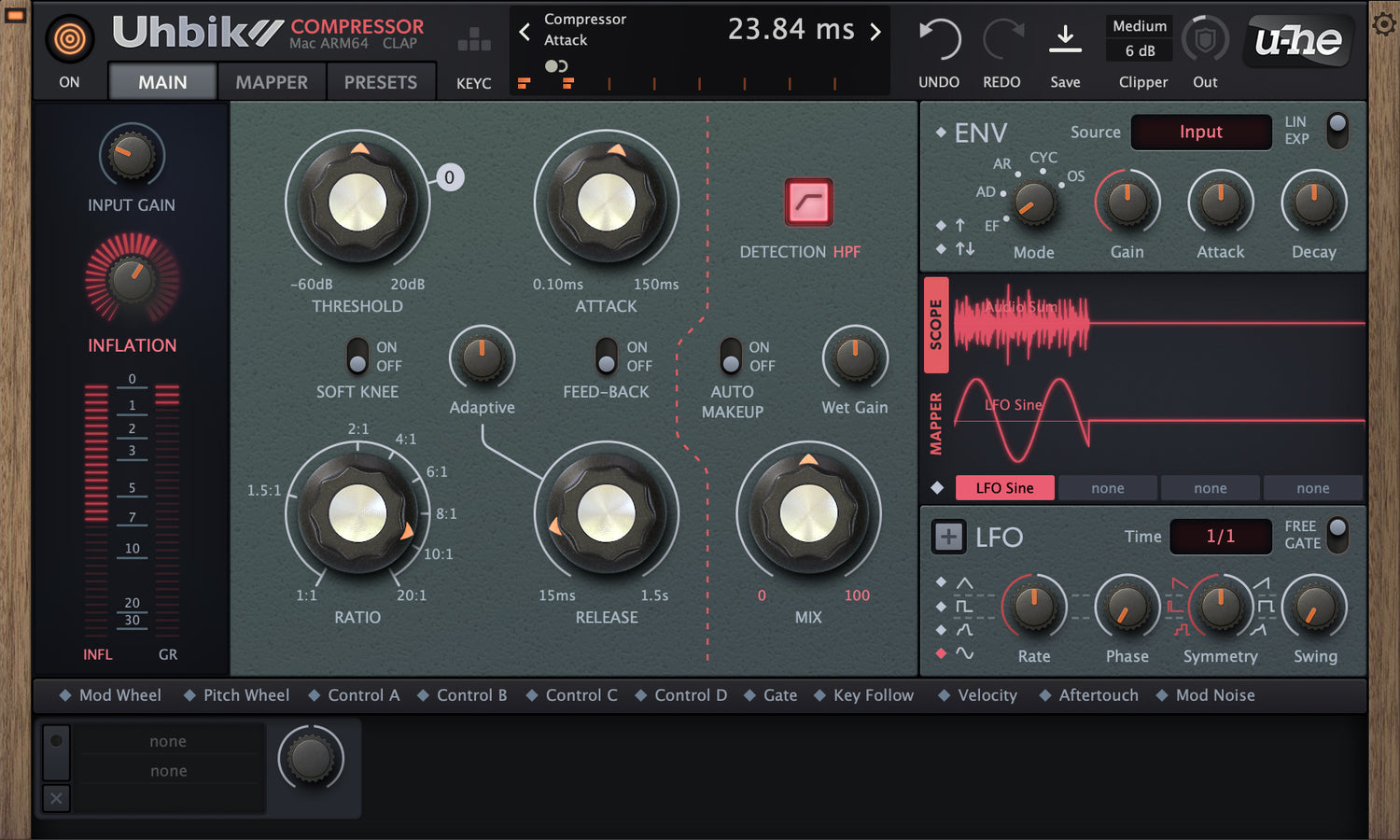 - Uhbik Compressor – Fügt Punch, Glanz und Klarheit mit adaptivem Release und einzigartiger Aufwärtskompression (“Inflation”) hinzu.