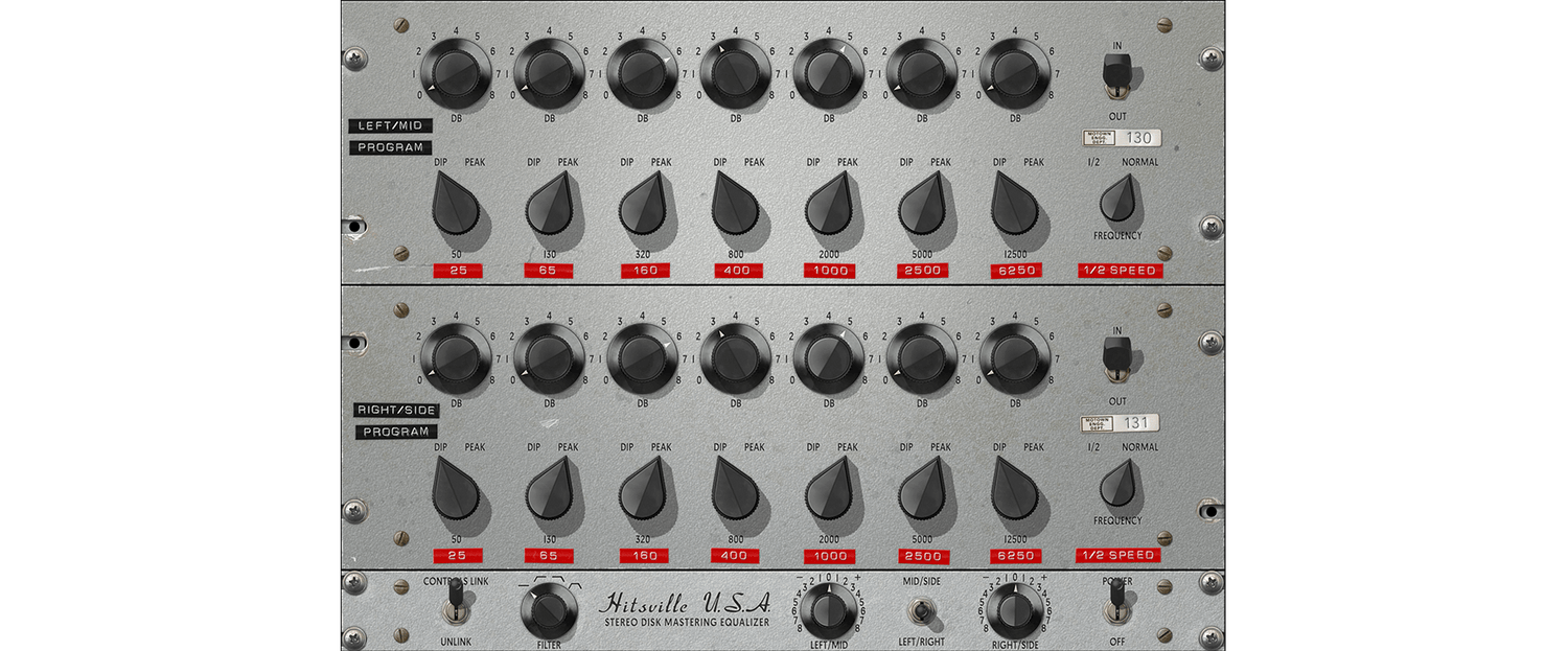 Vervollständigen Sie Ihre Tracks mit der weltweit einzigen Emulation von Hitsvilles ultra-seltenem Mid/Side Disk Mastering EQ. Hören Sie, wie die legendären "Motown Filter" und die Halbgeschwindigkeitsfrequenzeinstellungen Ihren Produktionen den fetten, vintage Hi-Fi-Klang und die Energie einer klassischen Single verleihen, frisch von der Motown-Produktionslinie. Hitsville, in der Tat.