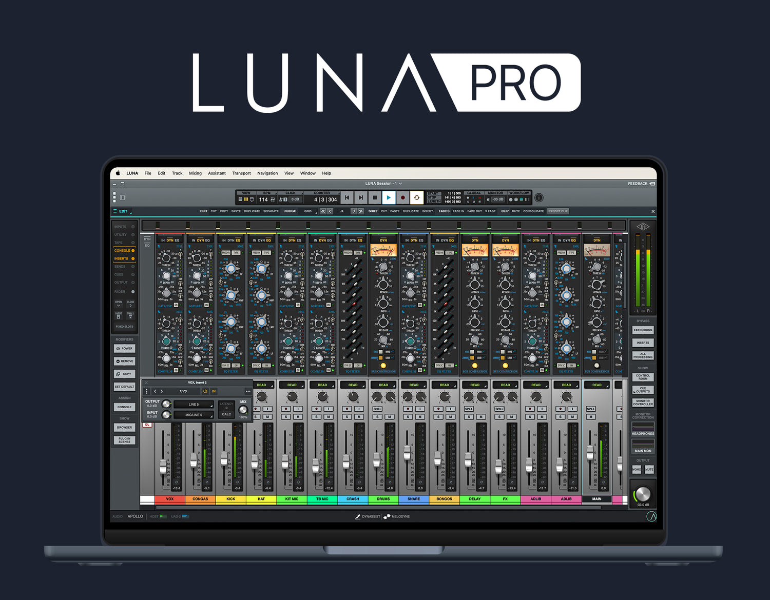 LUNA Pro entsperrt das ultimative analoge Erlebnis mit fachmännisch modellierten Consoles und Summing Extensions von API, Studer und Ampex, die direkt in den Mixer integriert sind – plus Dutzende von UAD Plug-Ins, virtuellen Instrumenten, ARA-Tools und professionellen Funktionen, um Ihre Songs von einem Demo zu einer fertigen Platte zu bringen.