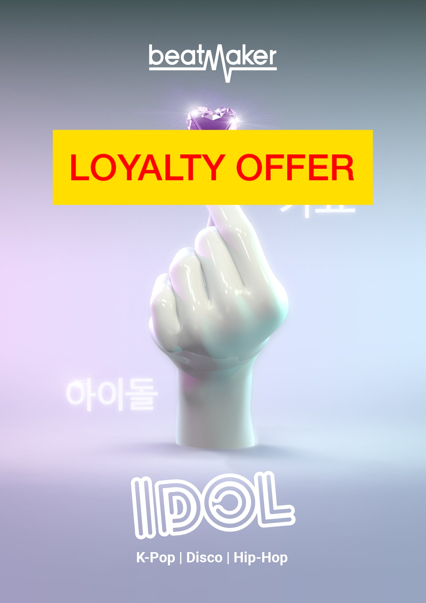 Beatmaker IDOL liefert die straffen, bearbeiteten Drums, die modernen K-Pop definieren. Vollgepackt mit Pop-Energie und Punch, ist es für saubere Mixe, eingängige Hooks und makellose Grooves gebaut.