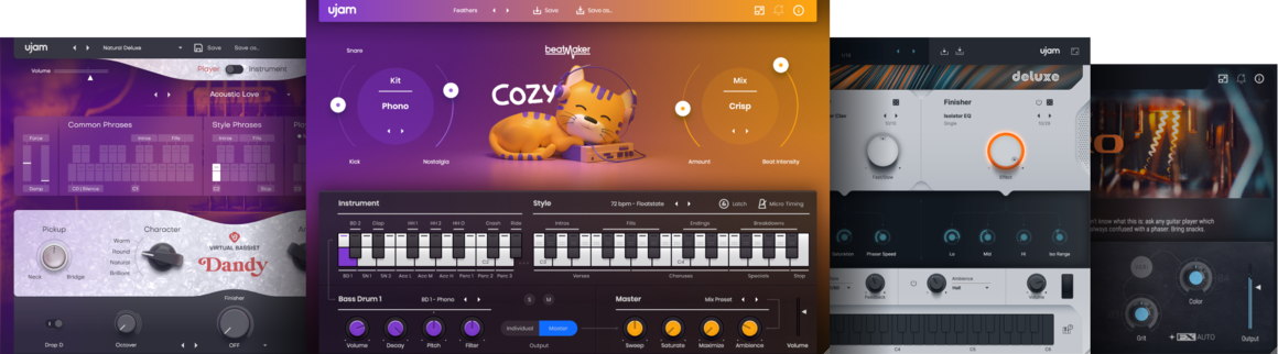 Entdecken Sie 4 essentielle Plug-ins für Ihre Lofi-Projekte: COZY für entspannte Beats, DANDY für Bass, DELUXE für funky Synth und RETRO für Vintage-Effekte.