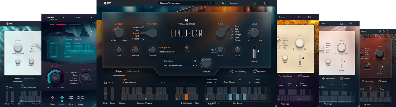Jedes Virtual Guitarist VST-Plugin innerhalb der Serie hat seine eigene einzigartige klangliche Persönlichkeit mit sorgfältig kuratierten Kombinationen aus Gitarren, Verstärkern, Spielstilen und Effekten, die alles von kraftvollen E-Gitarrenakkorden und funky cleanen Riffs bis hin zu zarten Nylon- und Stahlsaiten-Akustikanschlägen und Fingerpicking ermöglichen.