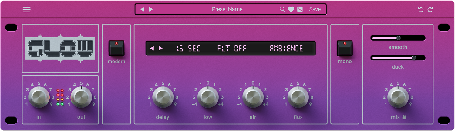 Glow ist eine liebevolle Wiederbelebung und Neuinterpretation dieses legendären Geräts. Wir haben seine charakteristischen Algorithmen und sein klangliches Verhalten treu erfasst und es dann mit modernem DSP, Workflow-Innovationen und kreativen Werkzeugen erweitert, die das ursprüngliche Design in kühnes, unerforschtes Terrain führen.