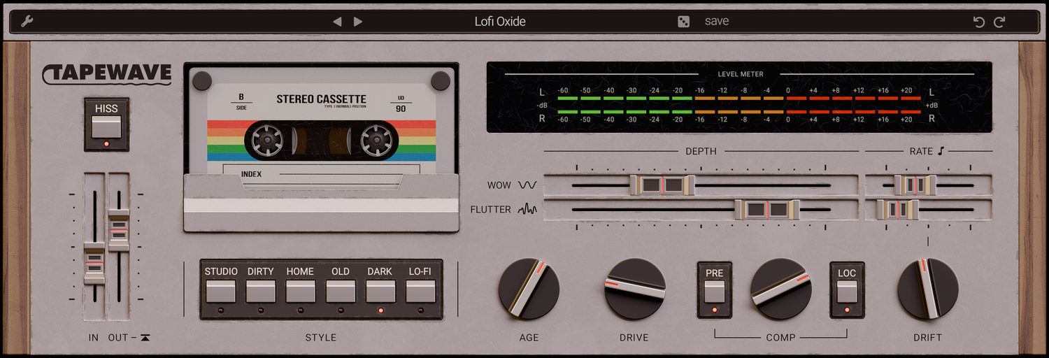 Tapewave ist ein leistungsstarkes und intuitives Tape-Färbungs- und Lo-Fi-Modulationsplugin, das entwickelt wurde, um die Wärme, den Charakter und die Unberechenbarkeit von Kassettentapes authentisch einzufangen — während es Ihnen moderne Kontrolle über jedes Detail gibt.