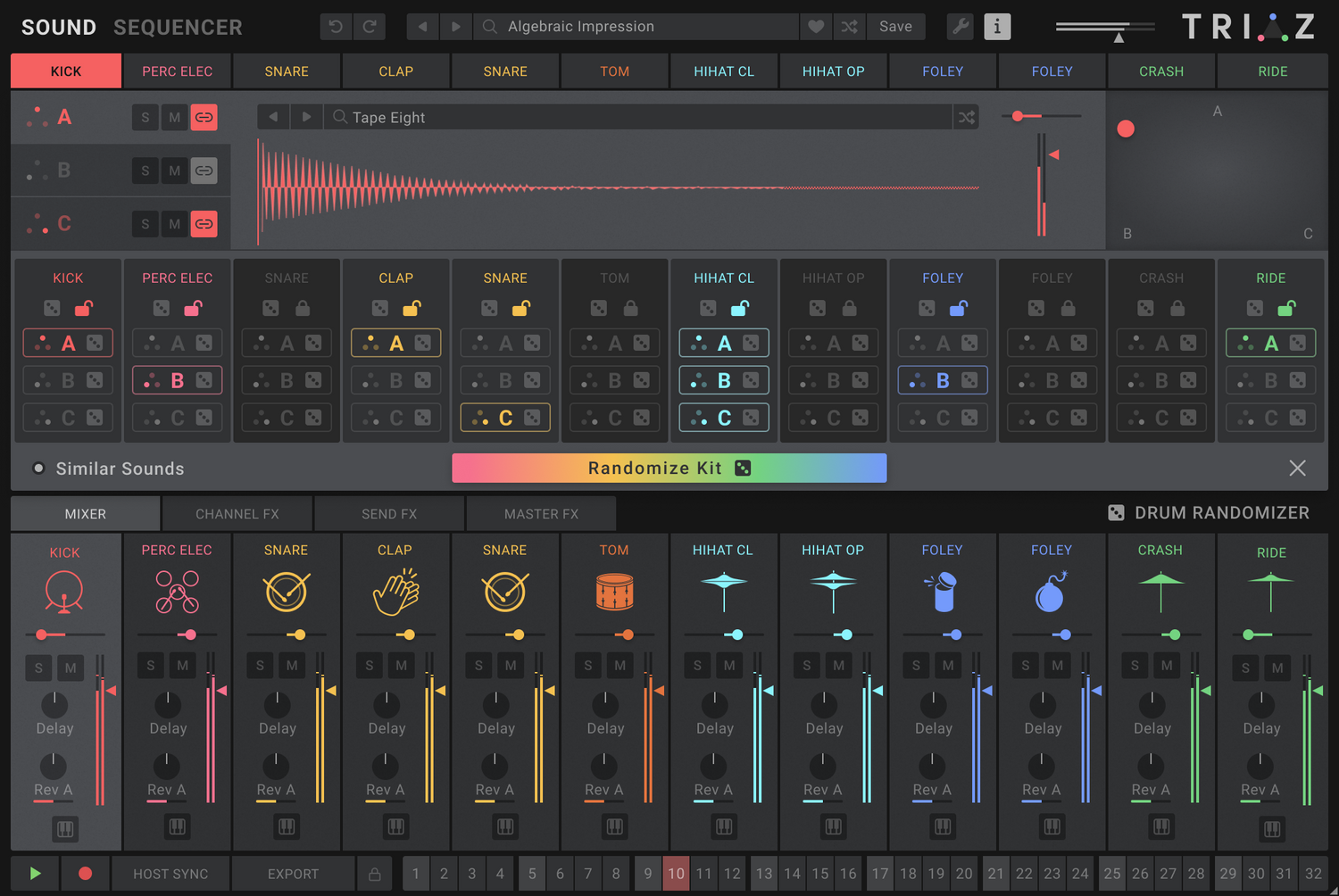 - Intelligent beat, pattern & kit randomizers