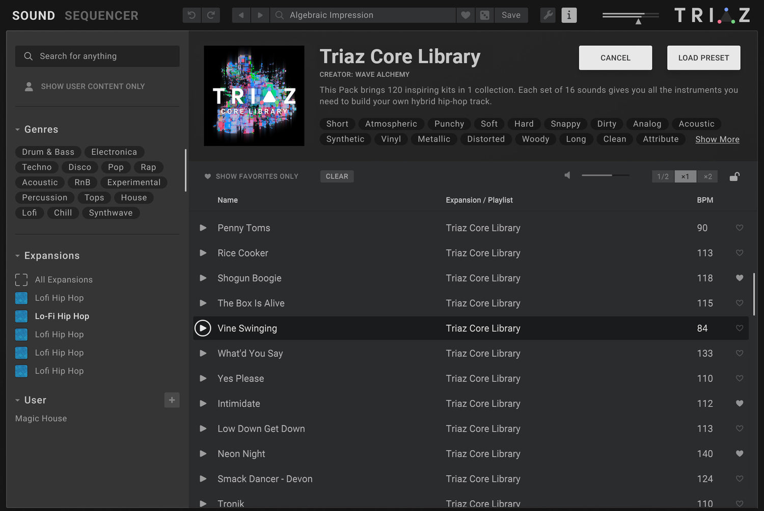 Mit 15.000 sorgfältig gestalteten Drums und über 700 produktionsbereiten Presets ist Triaz eine Goldmine an Sounds für jedes Genre. Entdecken Sie Drums, die aus: